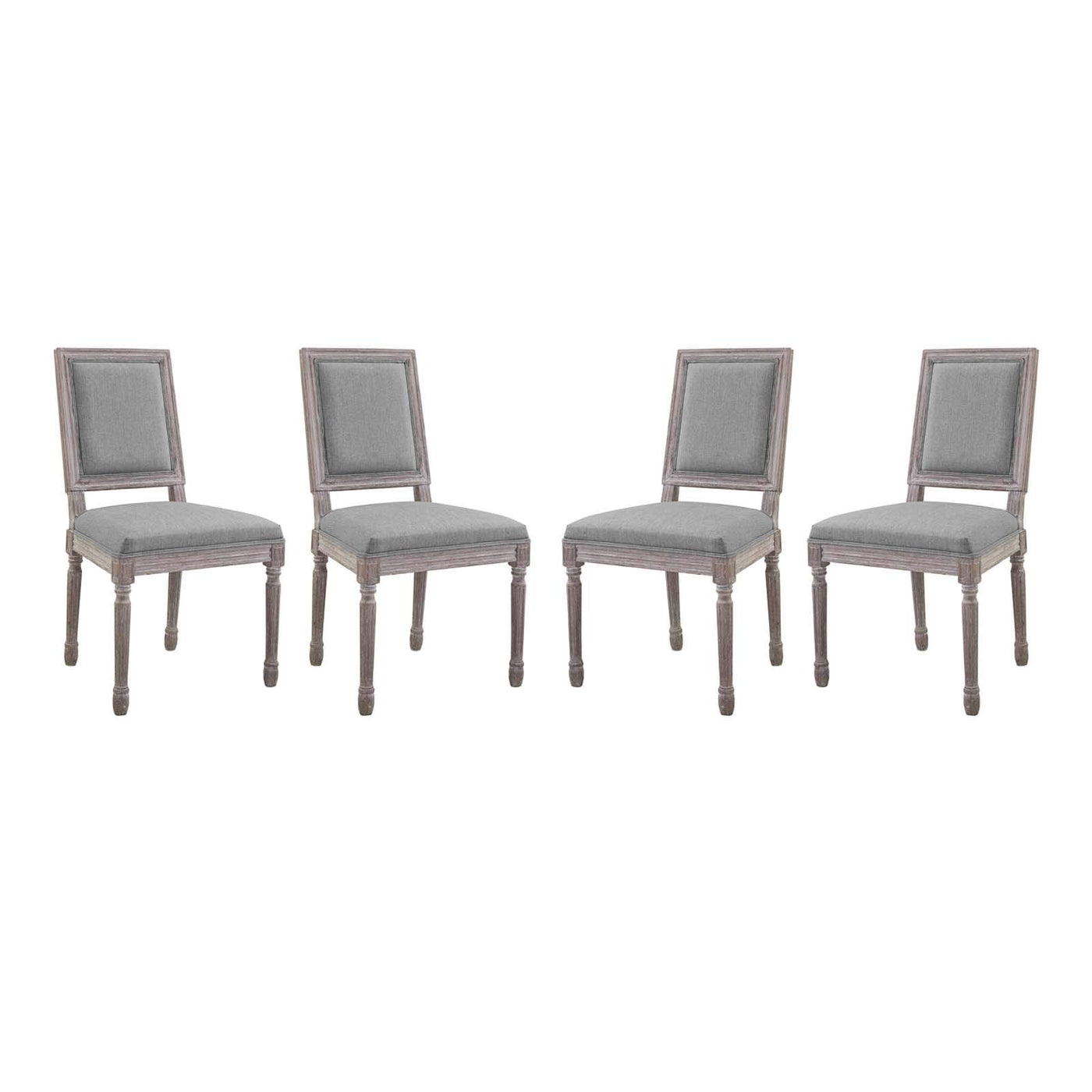 Modway Court French Vintage Upholstered Fabric Four Dining Chairs In Light Gray
