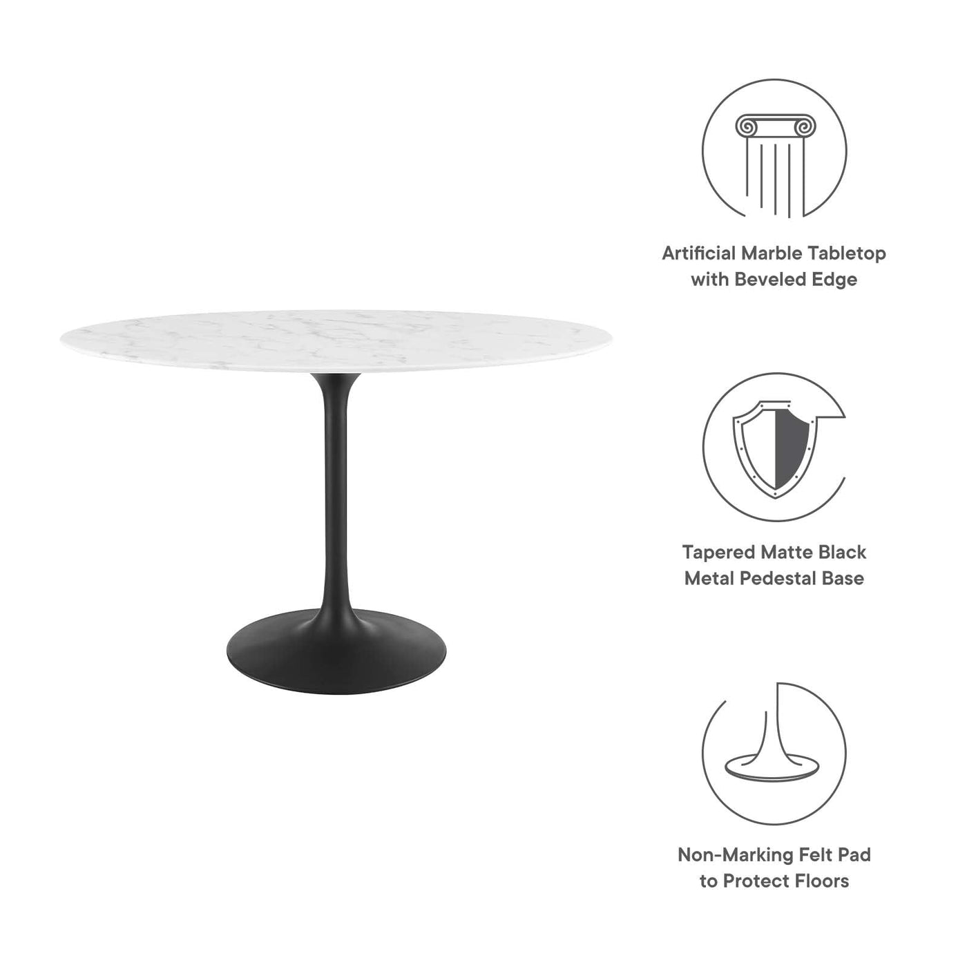 Modern Dining Table - Reflecting A Retro Silhouette Iconic In Mid-Century Design, This Pedestal Table Features An Organic Shape That Encourages Spirited Conversation During Mealtime And Entertaining | Versatile Dining - Designed For The Dining Room, Kitchen, Breakfast Nook, Or Office Break Room, This Dining Table Comfortably Seats 4 Making It Perfect For The Modern Home Or Apartment | Pedestal Base - Floating Atop A Tapered Metal Pedestal Base With A Chip-Resistant Powder-Coated Finish, The Oval Tabletop Features A Beveled Edge And Is Crafted With With Easy-To-Clean Artificial Marble | Oval Dining Table - Update Your Dining Space With This Mid-Century Modern Artificial Marble Dining Table. Includes Non-Marking Felt Pad. Dimensions: 48"L X 27.5"W X 29.5"H