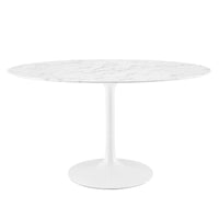 Modway Lippa 54" Oval-Shaped Mid-Century Modern Dining Table with Artificial Marble Top and White Base