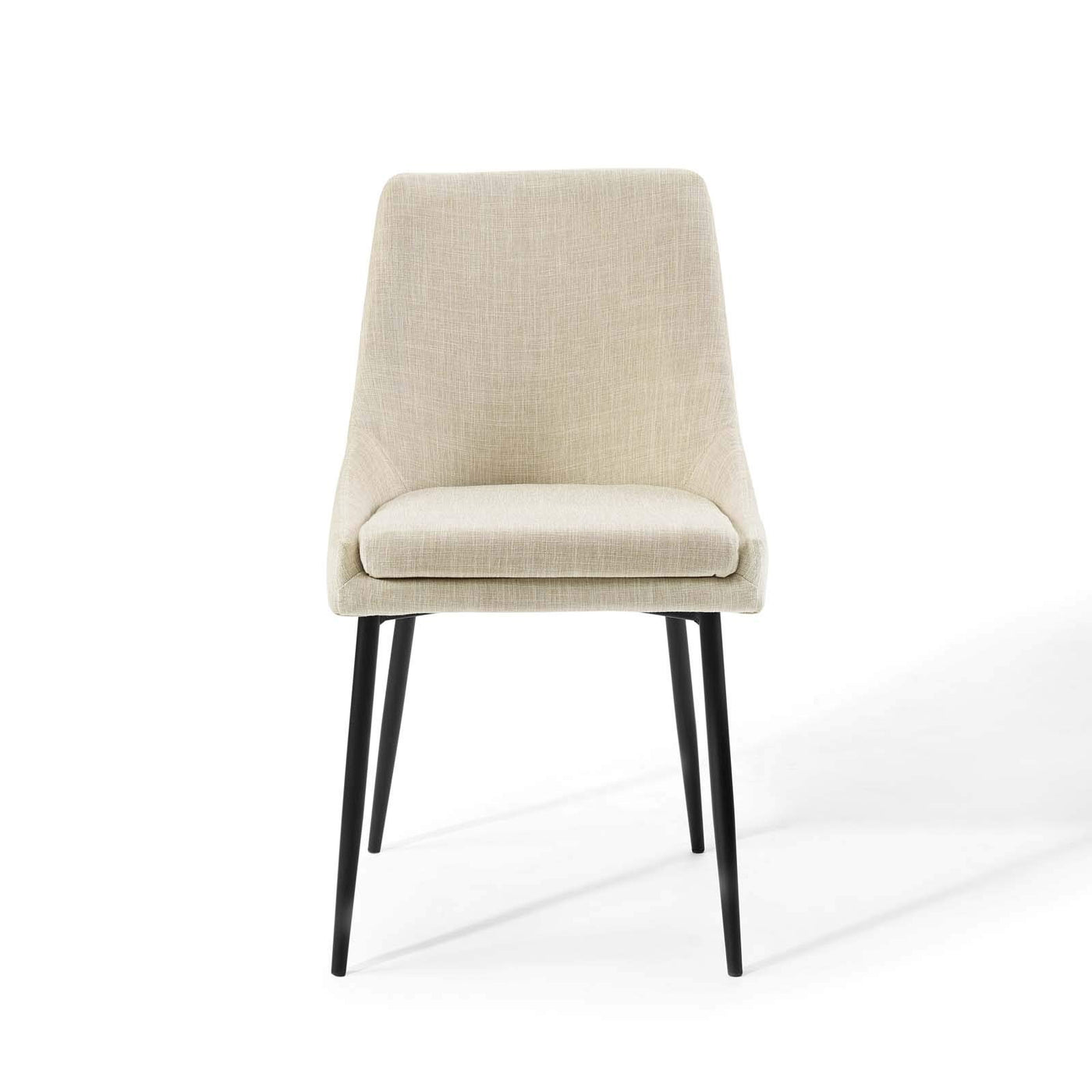 Revitalize your dining room decor with the Viscount Fabric Upholstered Dining Chair. Graceful, minimalist lines blend seamlessly with the luxe comfort of Viscount’s soft and durable polyester fabric upholstery. Supported by dense foam padding and resting securely on matte black stainless steel tapered legs, Viscount is a versatile accent chair. A vintage modern style makes this fabric chair ideally suited for a variety of rooms. Place Viscount in the dining room or kitchen as a dining chair, or in the living room, entryway, or bedroom as an accent chair. Chair Weight Capacity: 300 lbs.