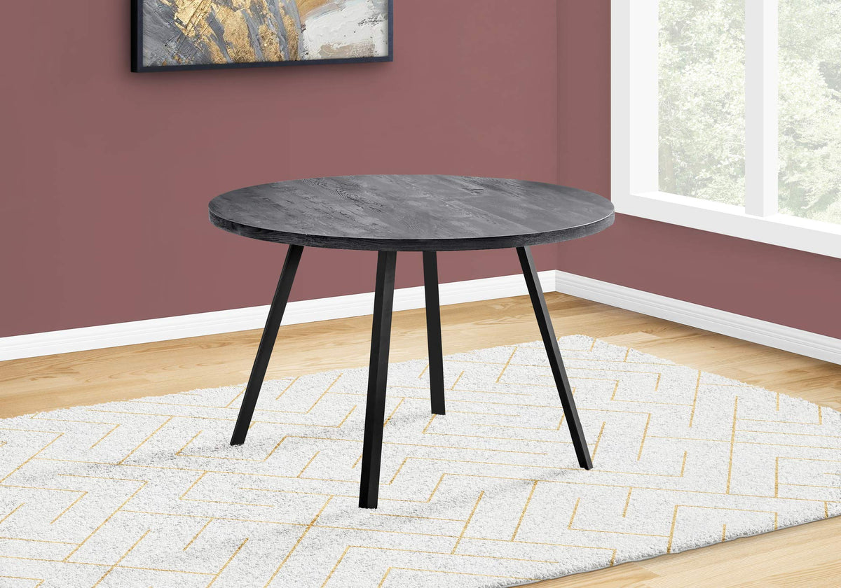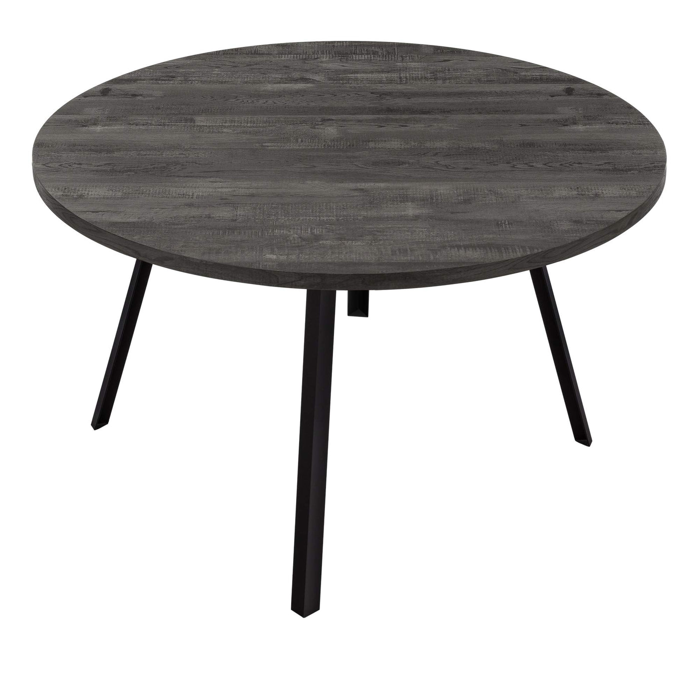 Whether You Are Moving Into A New Condo Or Renovating Your Kitchen And Dining Area, Start Your Re-Fresh With This Simple And Modern, Casual Round Dining Table. Comfortably Seating Up To 4 People, This Mid-Century Inspired Table Design Has A Beautiful Rich Black, Laminate Reclaimed Wood Look Top, Contrasting With Strong Black Angled Metal Legs For Stability. The Compact Size Of This Dining Table Is Ideal For Small Kitchens Or An Open Dining Space Giving It A Cozy Ambiance When Entertaining Family Or Friends. Pair The Dining Table With Some Comfy Chairs (Not Included) And Your Eat-In Area Is Ready To Use! Assembly Is Required.