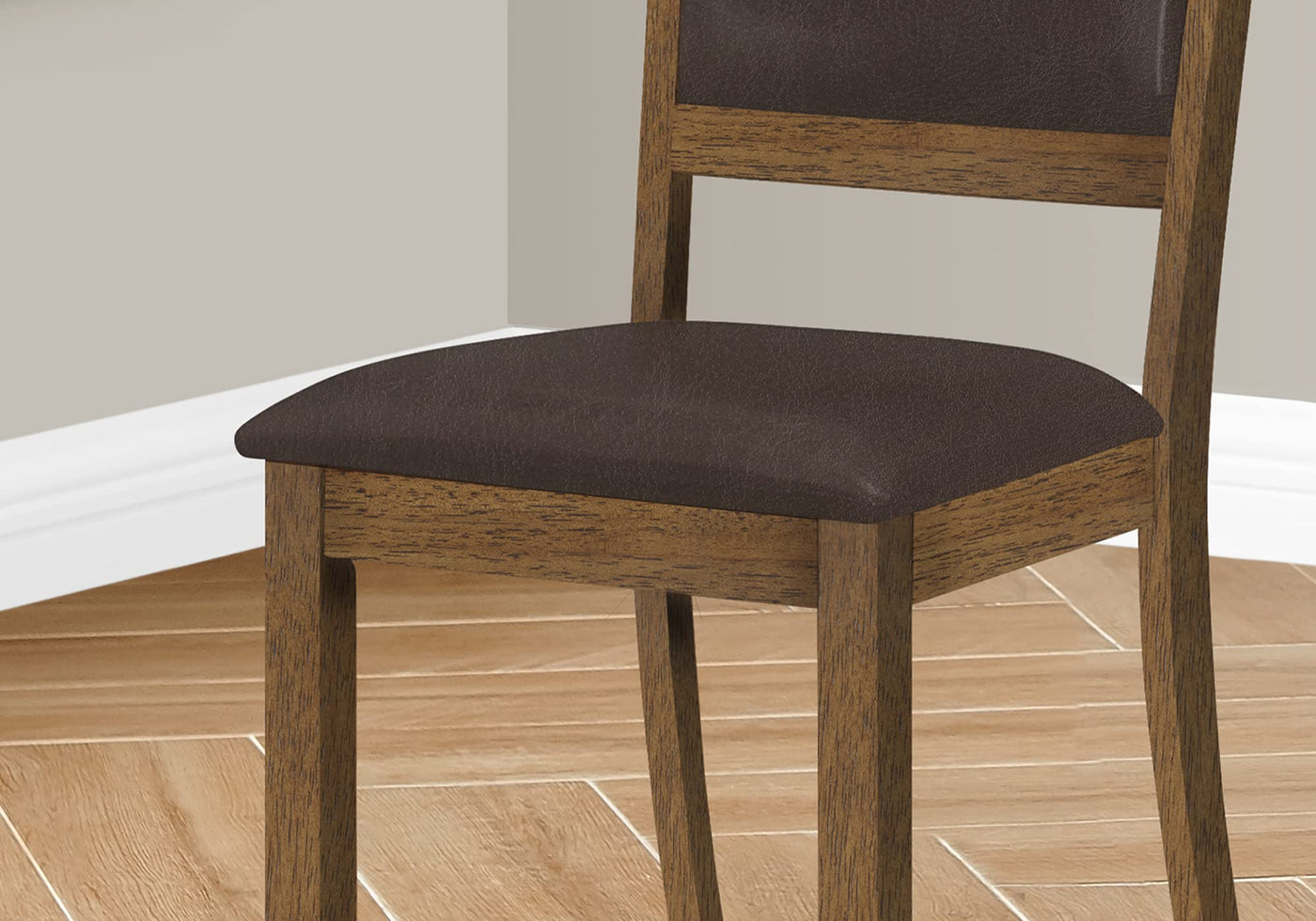 Monarch Specialties 1310 Chair, Set of 2, Side, Upholstered, Kitchen, Dining Room, Pu Leather Look, Wood Legs, Brown, Transitional Chair-2Pcs Walnut/Dark, 18.25' L x 22.75' W x 40' H