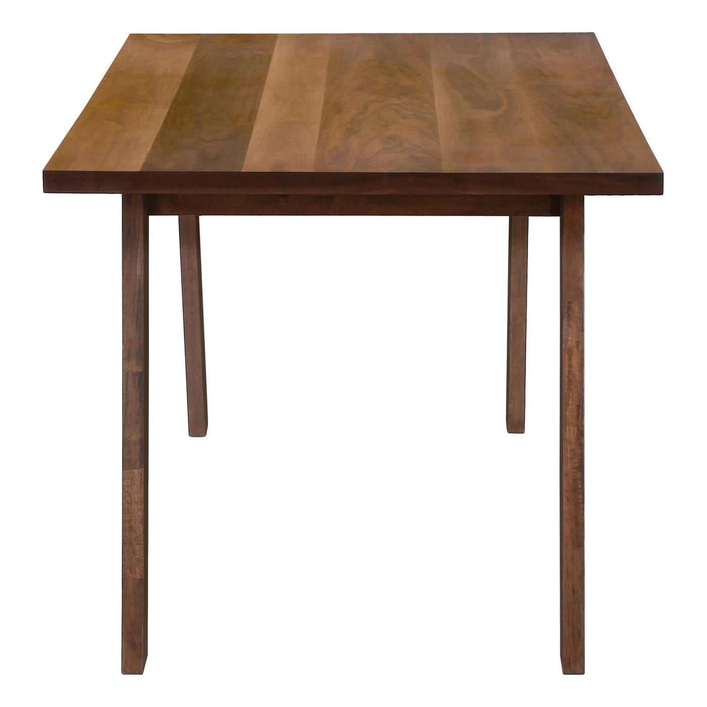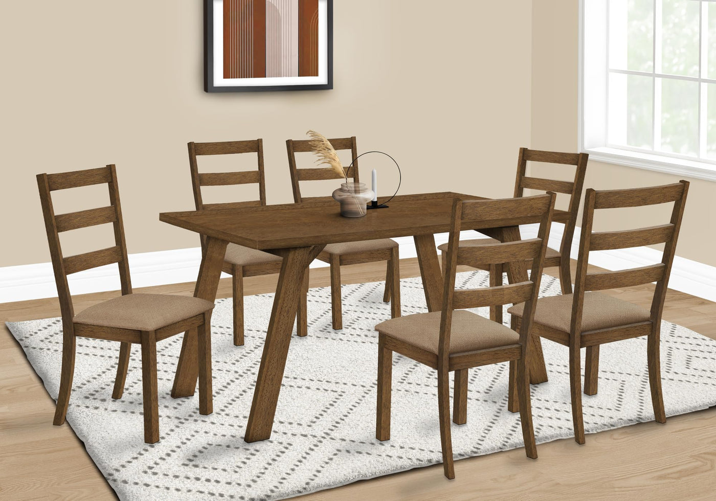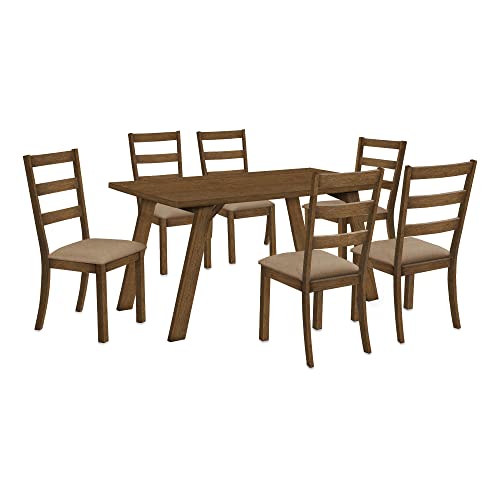 Are you ready to create some lasting memories around this retro inspired, rectangular dining table for 6? The sleek beveled tabletop is solidly supported with the wide angular legs, all enveloped in a handsome brown walnut veneer with an open grain natural look. Made from solid engineered wood, this contemporary dining table is beautifully sized to also fit in small spaces and will look right at home in a casual or formal dining room setting. Combine this dining table with some chairs that complement the design, for a welcoming dining space that brings everyone together. For indoor use only. Assembly is required.