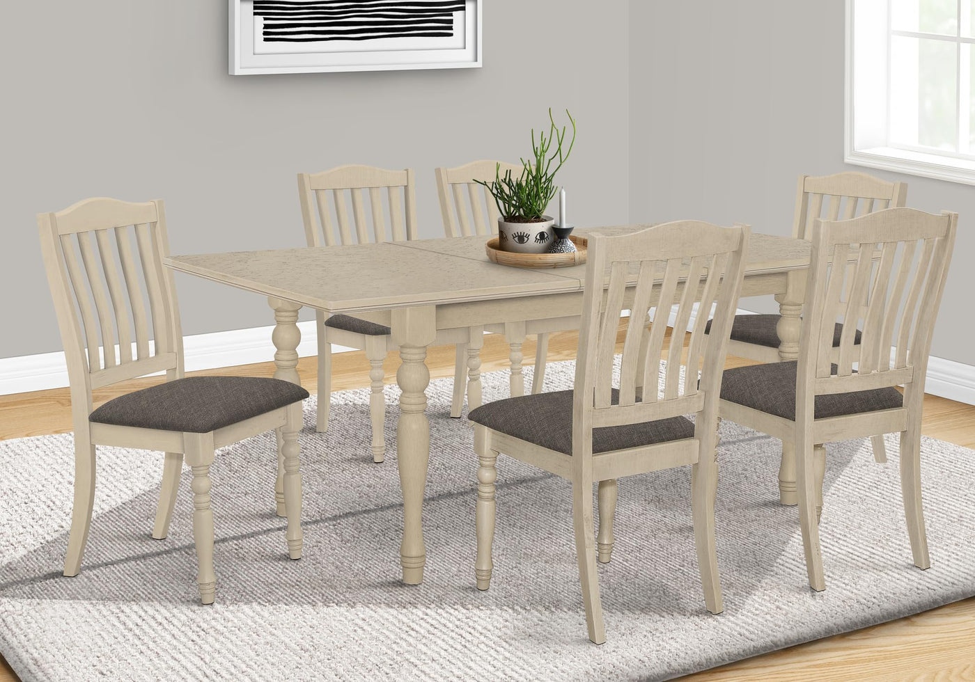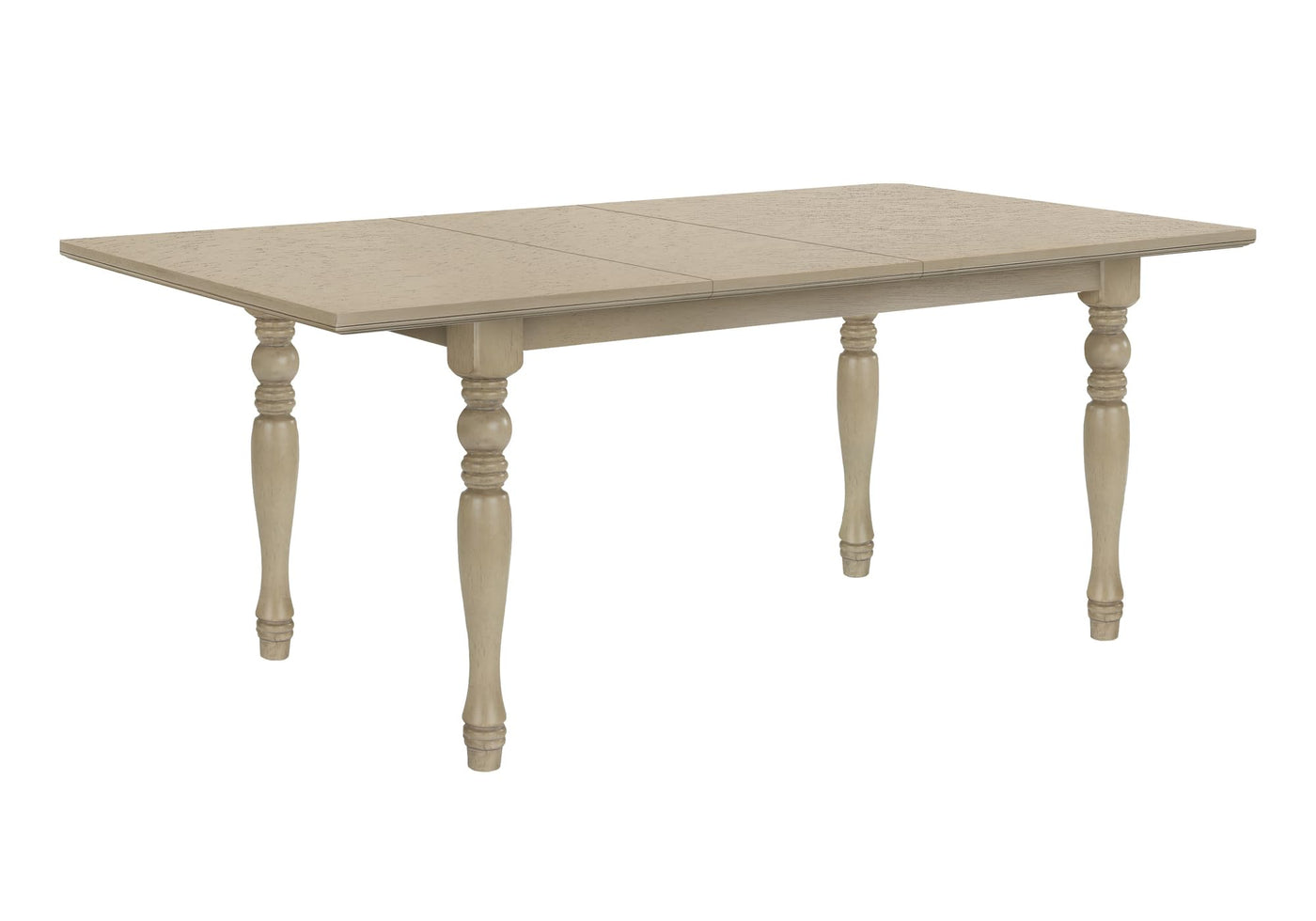 Turn your dining room into a stylish and functional space with this gorgeous antique grey veneer dining table. Comfortably seating up to 6, this fashionable table includes an 18' extension panel giving you plenty of room to seat your family and friends. Crafted with a durable okume veneer top and solid wood turn post legs, this table is designed to last, and with its transitional design, it will fit seamlessly in both your dining room and kitchen. Plus, it's easy to assemble with full illustrated instructions included, and easy to clean top, so you can enjoy your table for years to come. With its attractive look and 2 year limited warranty, your dinner table is sure to become the center of attention in your home! The chairs and bench are sold separately.