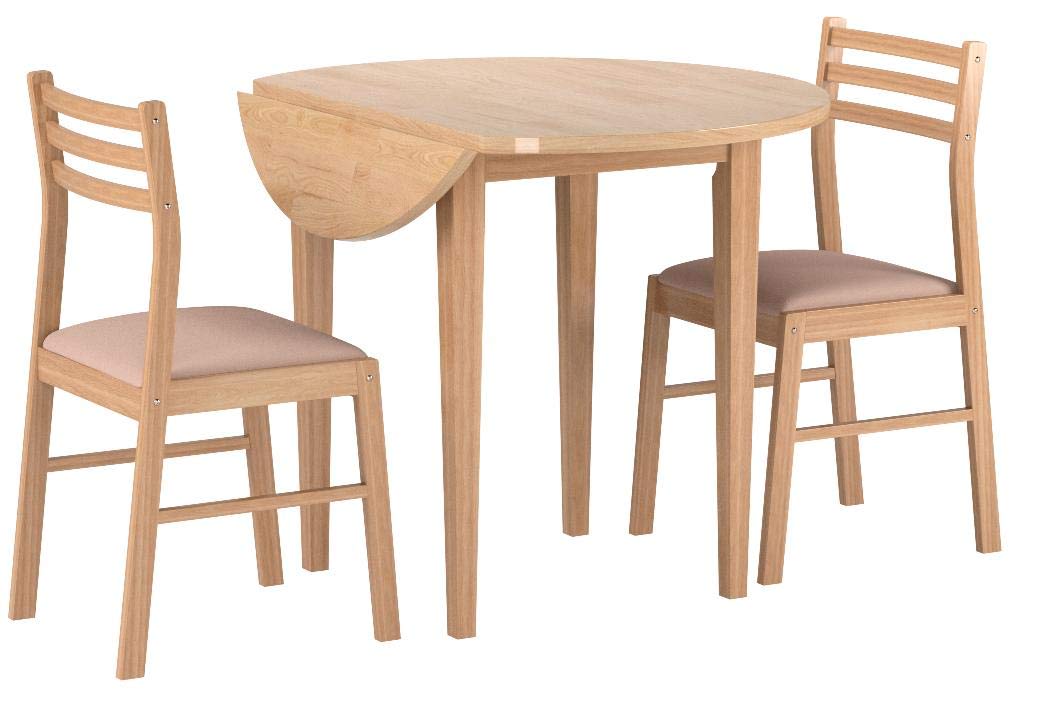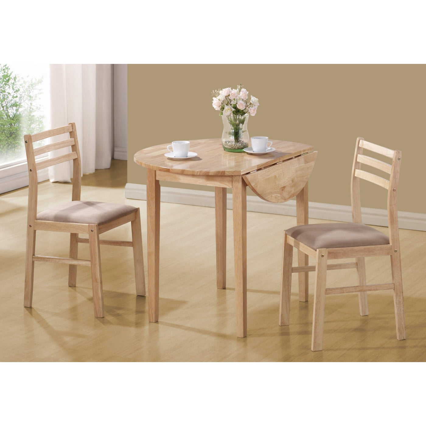 Monarch Specialties 3-Piece Dining Set with a 36-Inch Diameter Drop Leaf Table, Natural