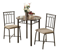 Monarch Specialties 3045 Dining Table, 3pcs Set, Small, 30' Round, Kitchen, Metal, Laminate, Brown Marble Look, Transitional Set-3Pcs Espresso, 30' L x 30' W x 30' H, Bronze-Cappuccino