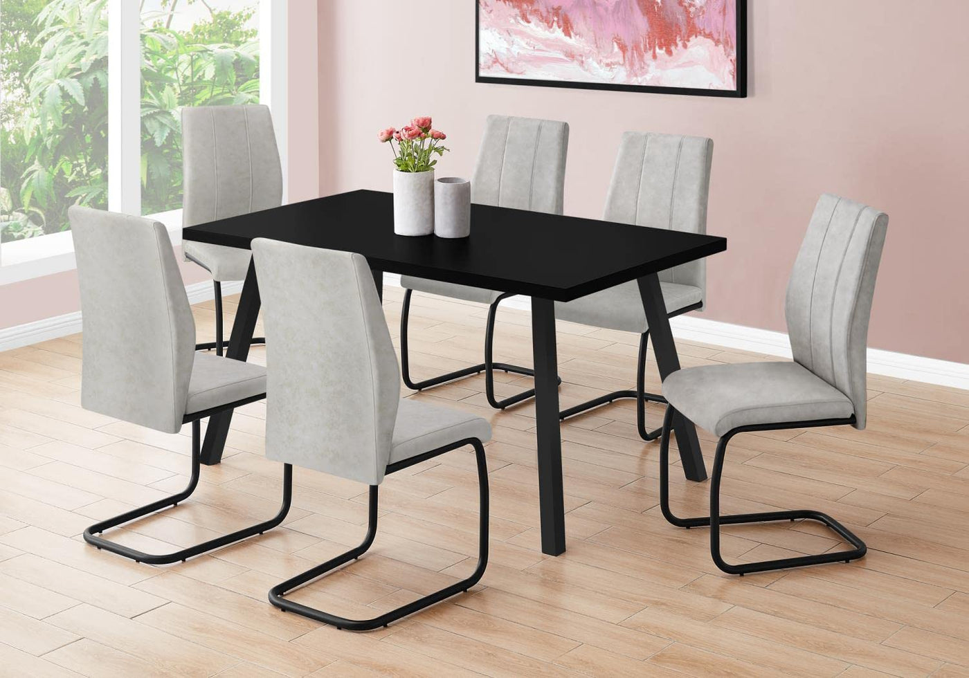 Gather around for a dinner night with family or friends and enjoy this trendy black dining room table that seats up to 6 people. It is thoughtfully designed for a dining room setting, offering matching and sturdy black metal legs for a small meal or a feast. This high-quality, matte black kitchen table Is sure to become your favorite. It's time to dine in style and comfortably! Chairs are sold separately.