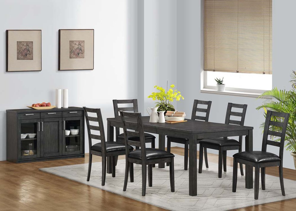 These matching charcoal grey side chairs flatter the design of the dining table with their simple clean lines and matching shaker styled legs. With their light beige upholstered cushioned seats, these chairs undeniably add to the appeal and character of the dining set.