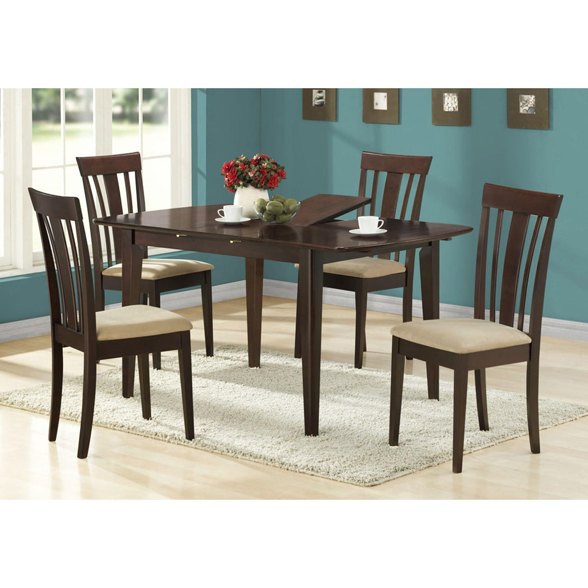Timeless appeal, clean lines and simple design are the key elements of the Logan dining set. Featuring a solid wood table top with sleek square tapered legs finished in a deep cappuccino and a convenient 12-inch butterfly leaf, this set is quality built and will blend with most styles of décor.