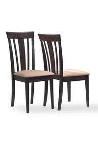 The cappuccino colored dining chairs will look wonderful in your casual contemporary home. With a vertical slat back, sleek square legs and comfortable fabric covered padded seats, these pieces create a warm and inviting ambiance.