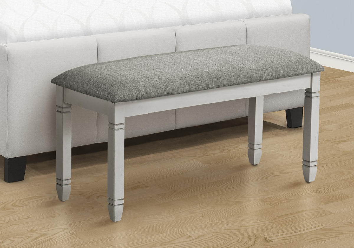 VERSATILE STYLISH BENCH: This comfortable, 41' rectangular bench, upholstered in a chic grey fabric is a practical and stylish addition to any home decor. | DURABLY DESIGNED: Built with quality craftsmanship, this bench includes a thick, foam padded seat covered in a gray linen-look fabric and supported by grey solid wood legs for added stability. | EASY ASSEMBLY: This elegant bench is easy to assemble with illustrated instructions included for a quick, hassle-free setup. | 2 YEAR WARRANTY: Made with quality materials, this versatile bench is backed by a 2 year limited warranty for your peace of mind against any manufacturer defects. | TRANSITIONAL STYLE: Designed in a transitional style with simple lines and a neutral color suitable for all decors, this fashionable style bench is perfect to place in a kitchen, dining room, entryway or bedroom.