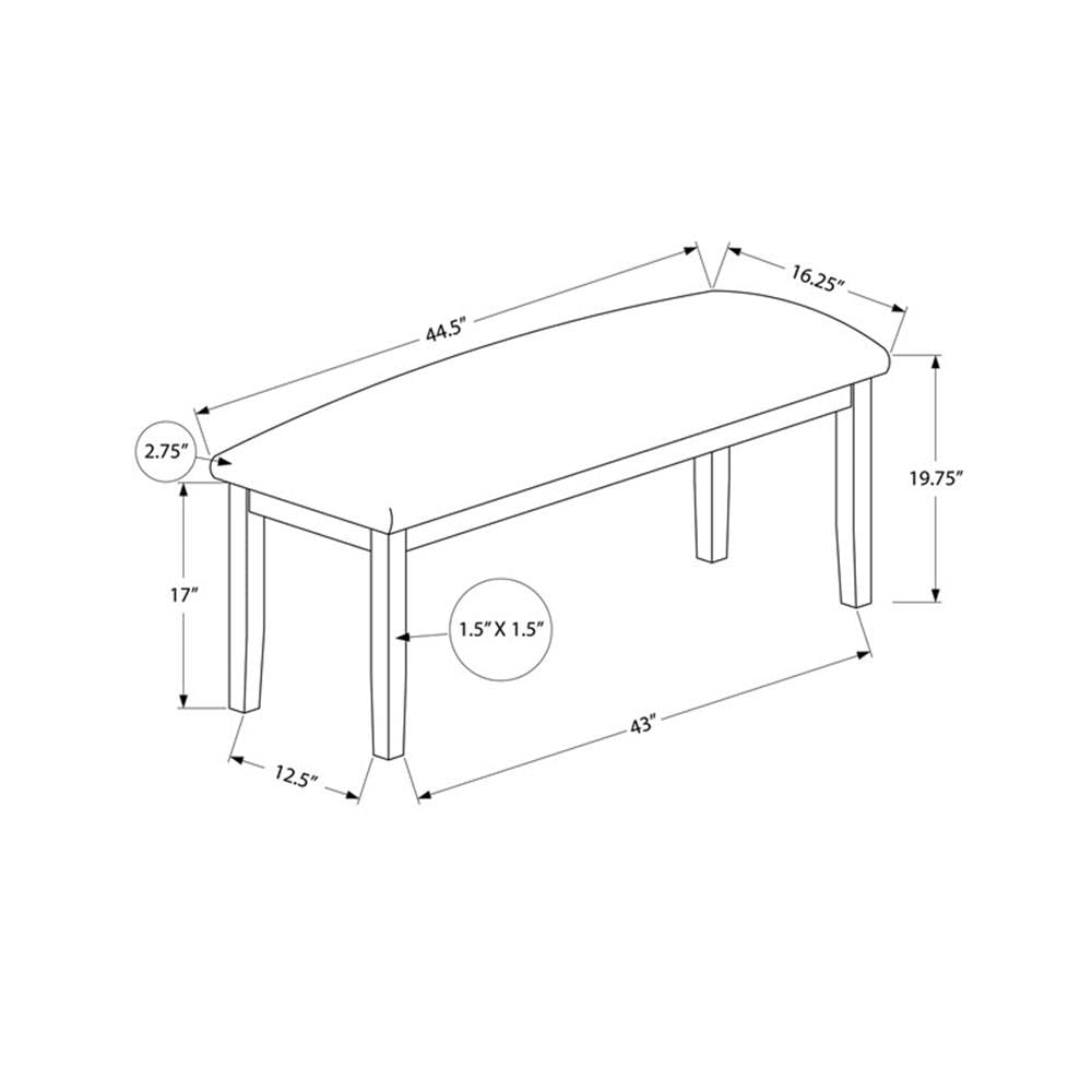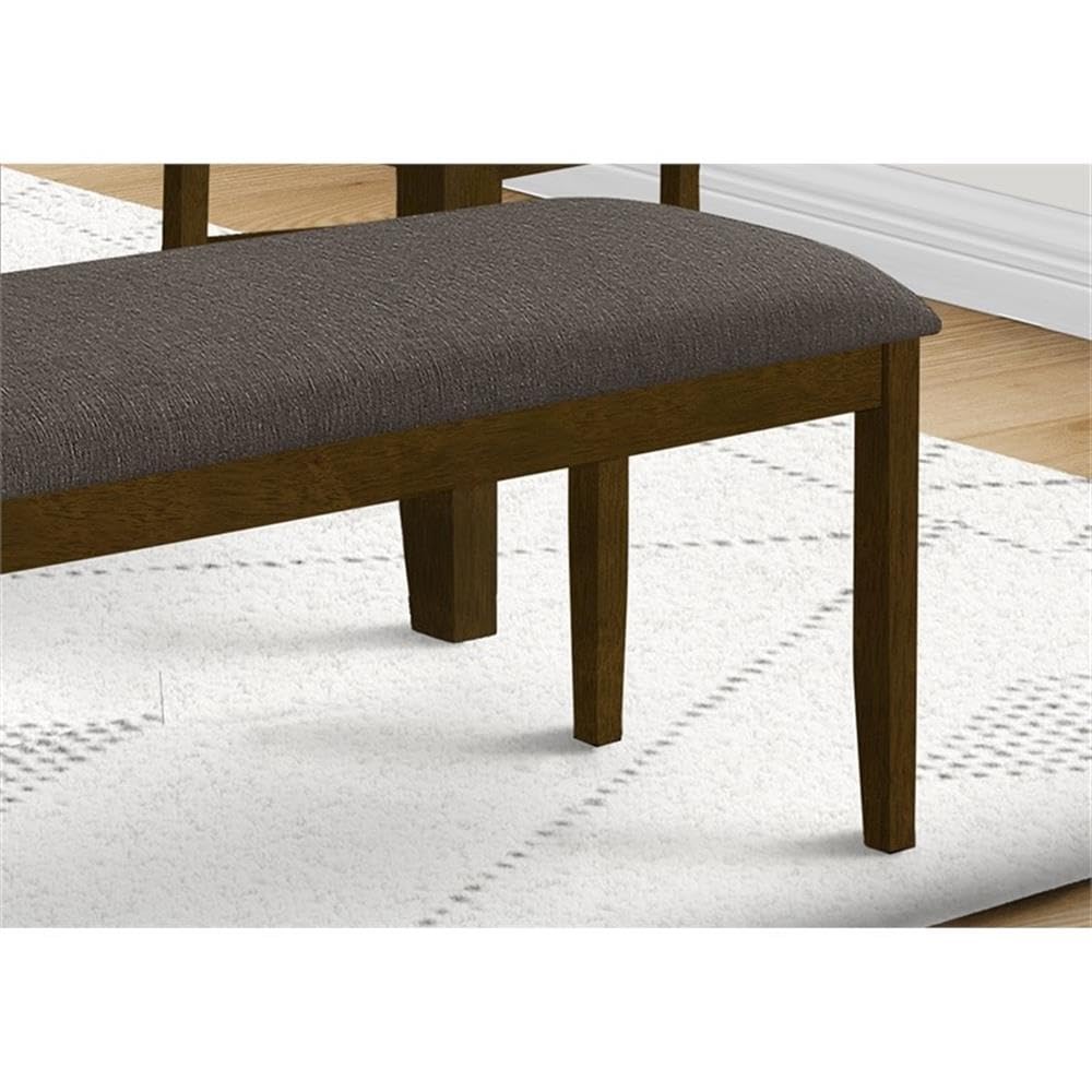 If you are looking for a fashionable, durably designed bench for your dining room, hallway, entryway, then this 44 inch rectangular bench in a beautiful walnut brown finish with a brown fabric seat, is the perfect choice. Constructed with brown solid wood framing, this practical piece has a transitional design that will bring style to any space. The thick cushioned upholstered seat offers a comfortable place to sit whether you place it at your dining table or in your mudroom. Easy to assemble with illustrated instructions and hardware provided to setup and ready to use in no time. This upholstered bench is built with quality materials and backed by a 2 year limited warranty against manufacturer s defects for your comfort and security. Add some fashionable style to your home with this versatile bench!