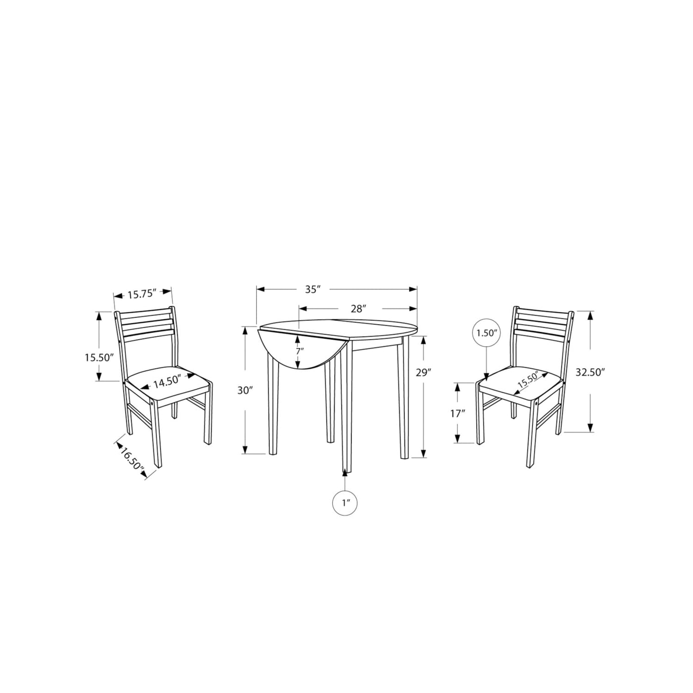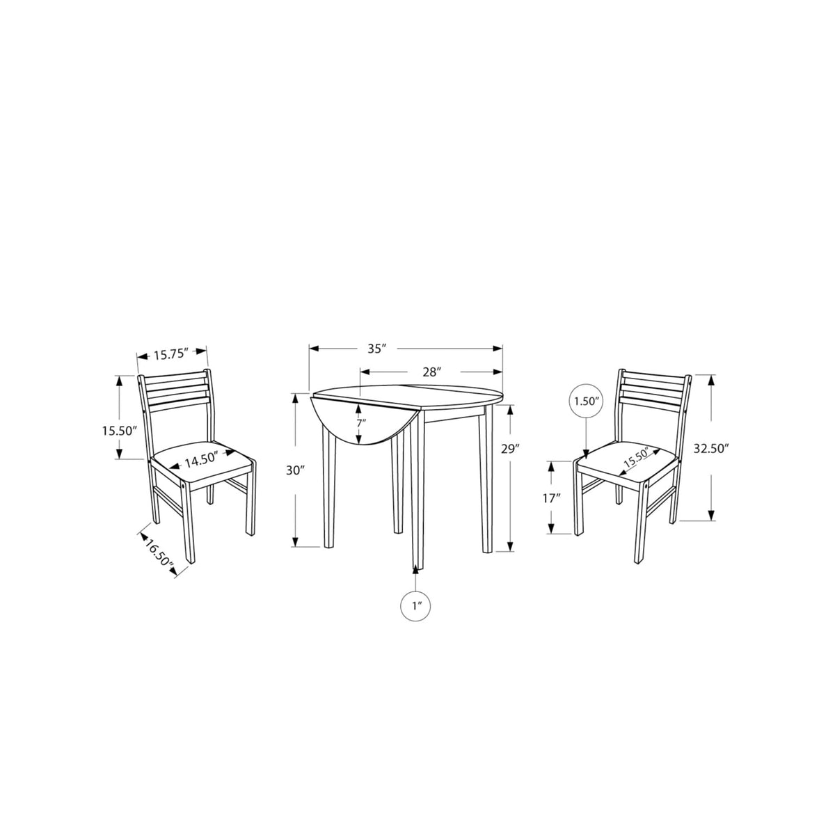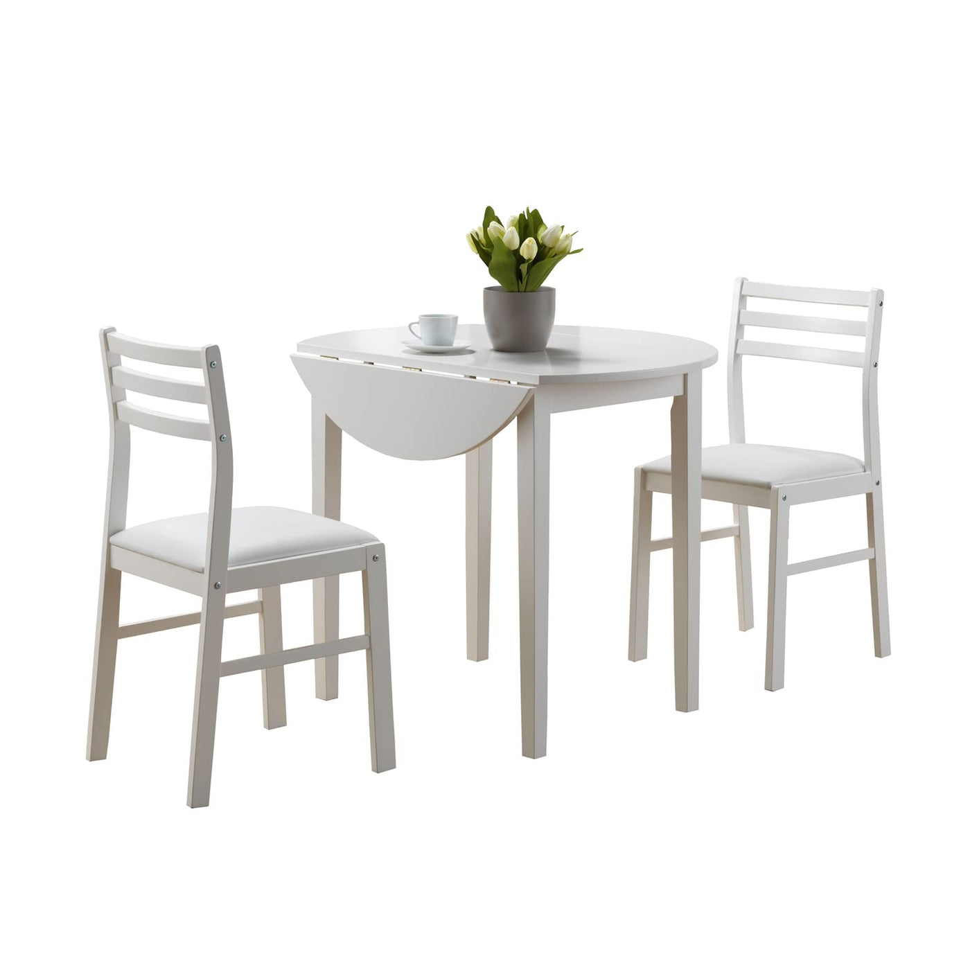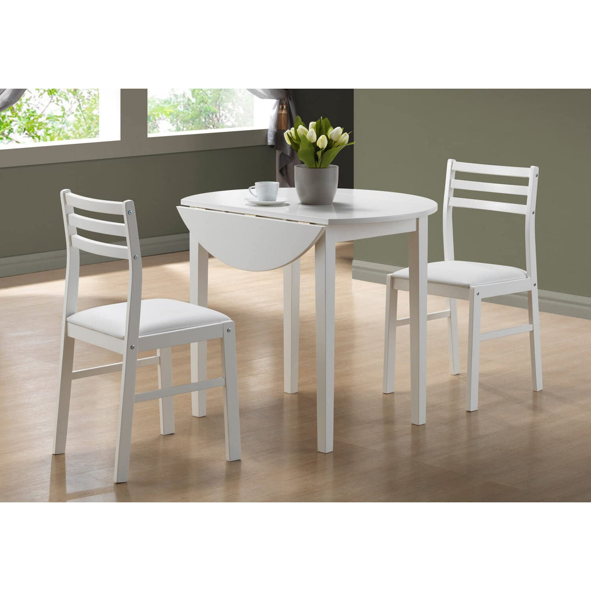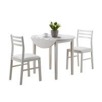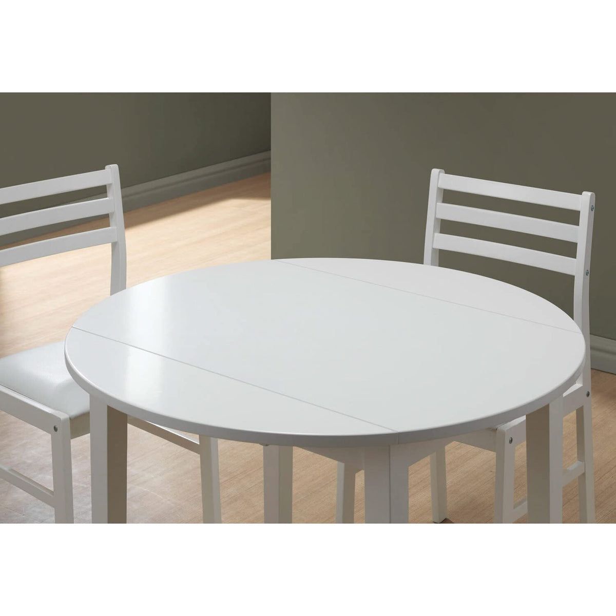 Monarch Specialties I 3-Piece Dining Set with 36' Diameter Drop Leaf Table, White