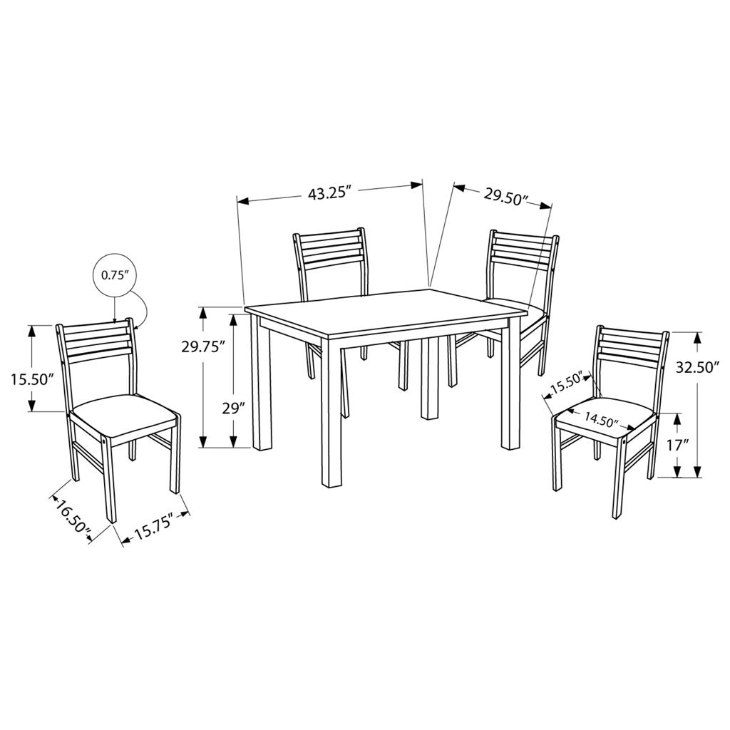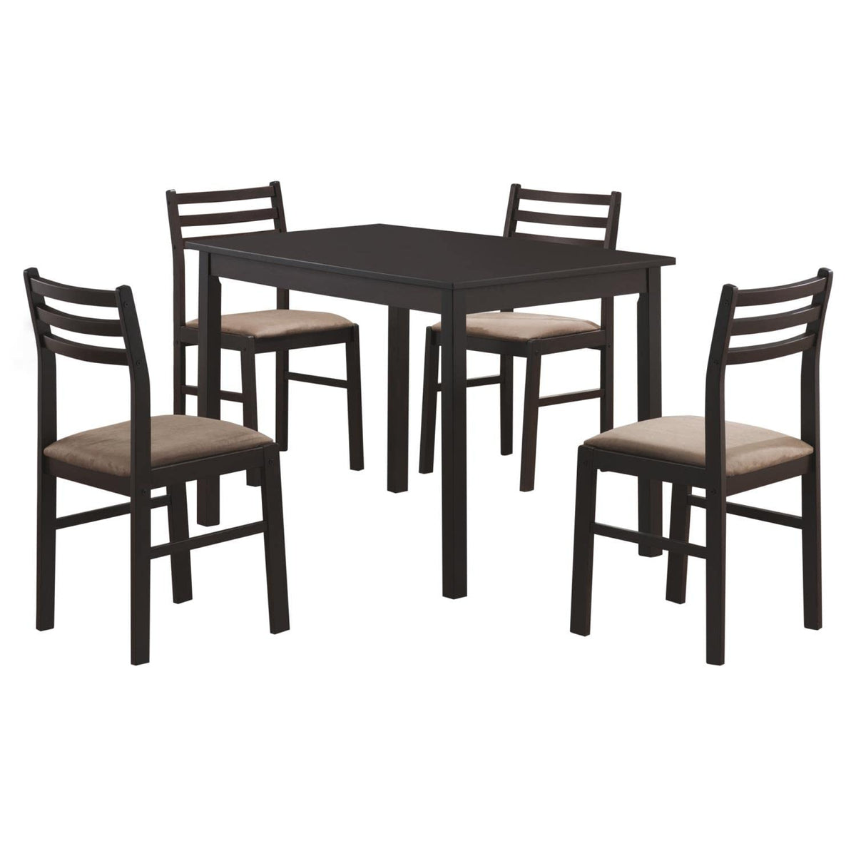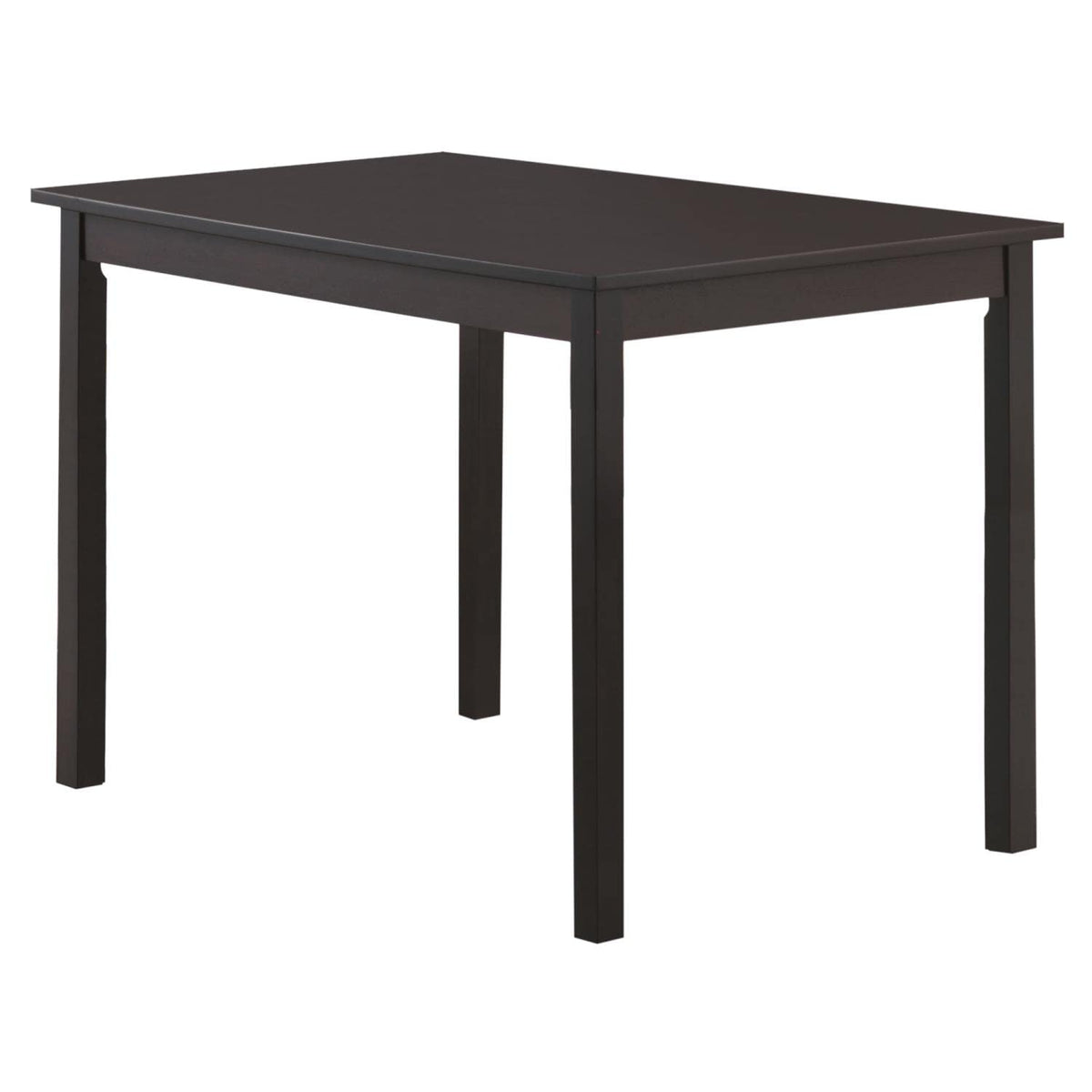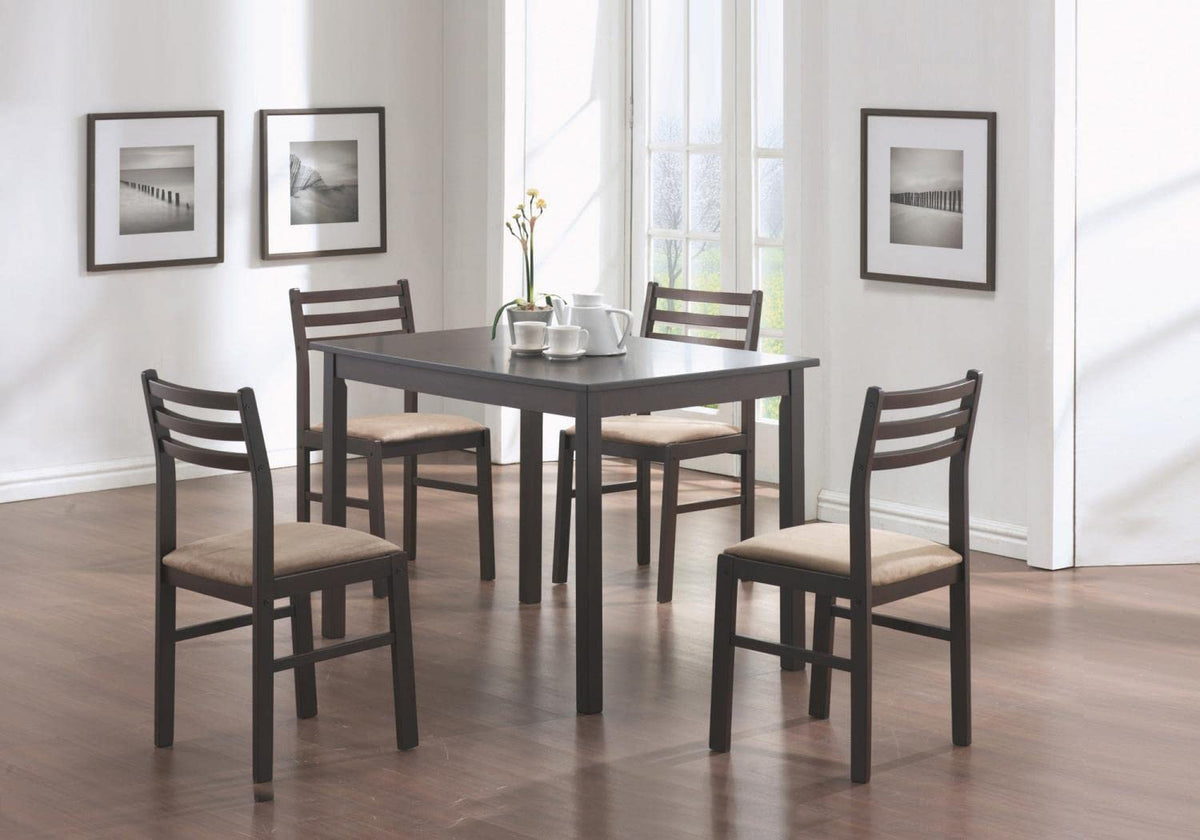 This casual dining set offers classic styling that will blend with any decor. The rectangular table features a solid wood top, straight edges and sleek square legs. The armless side chairs feature a ladder back design with padded upholstered seating for comfort.