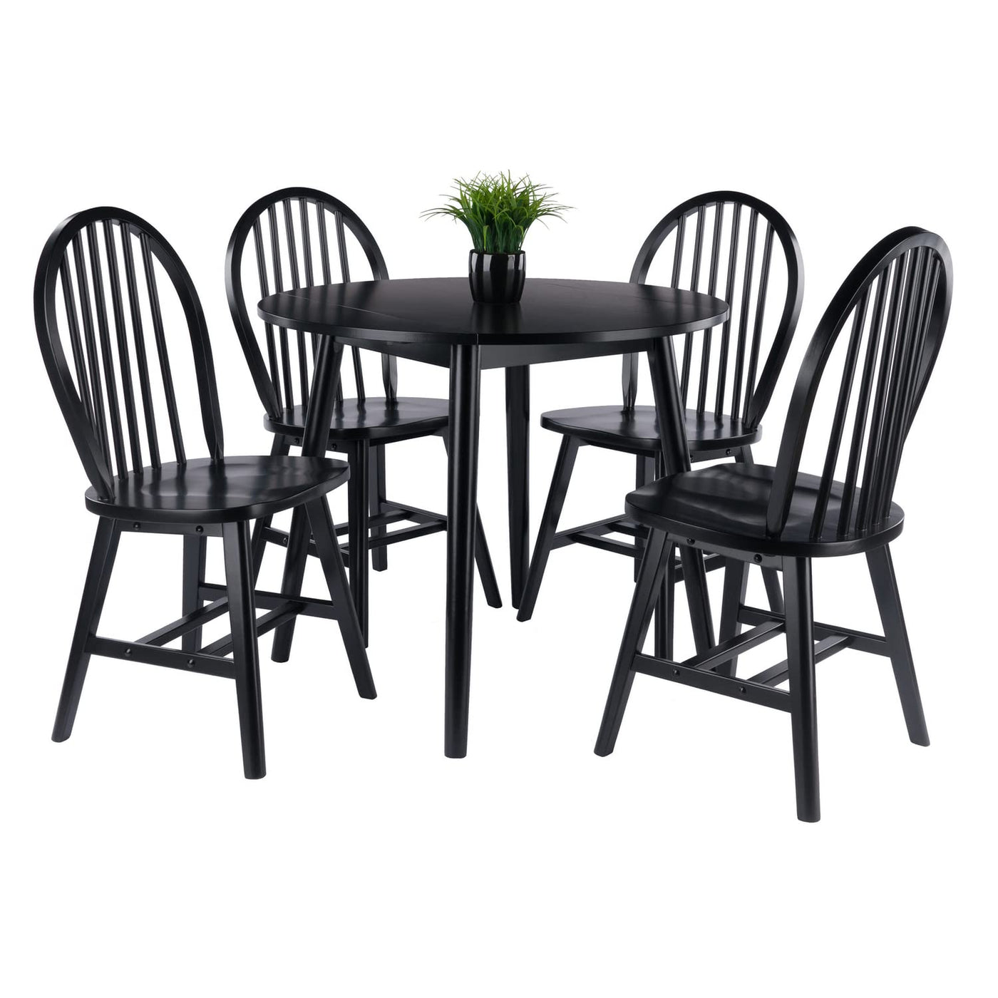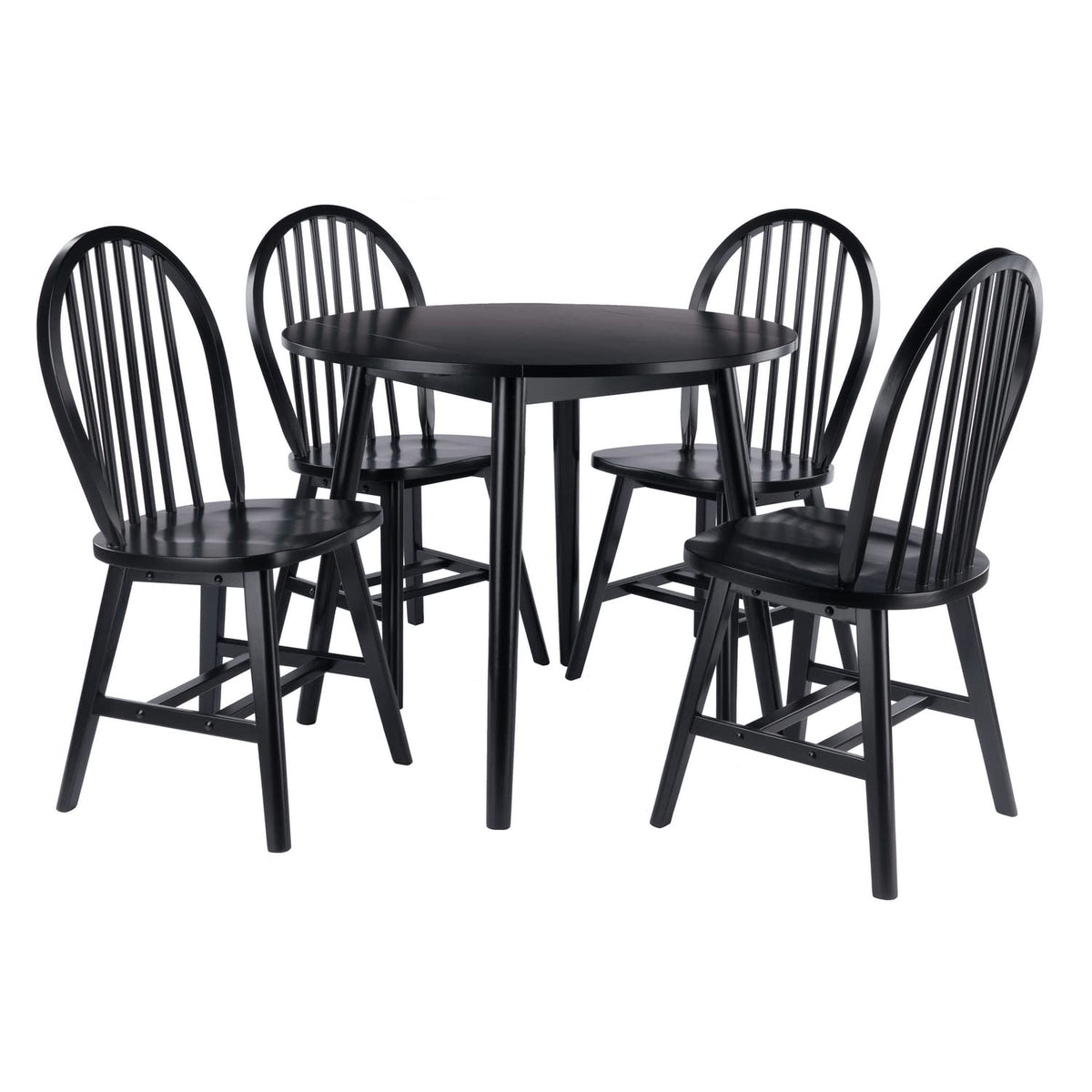 Moreno 5-Pc Drop Leaf Dining Table with Windsor Chairs - Black