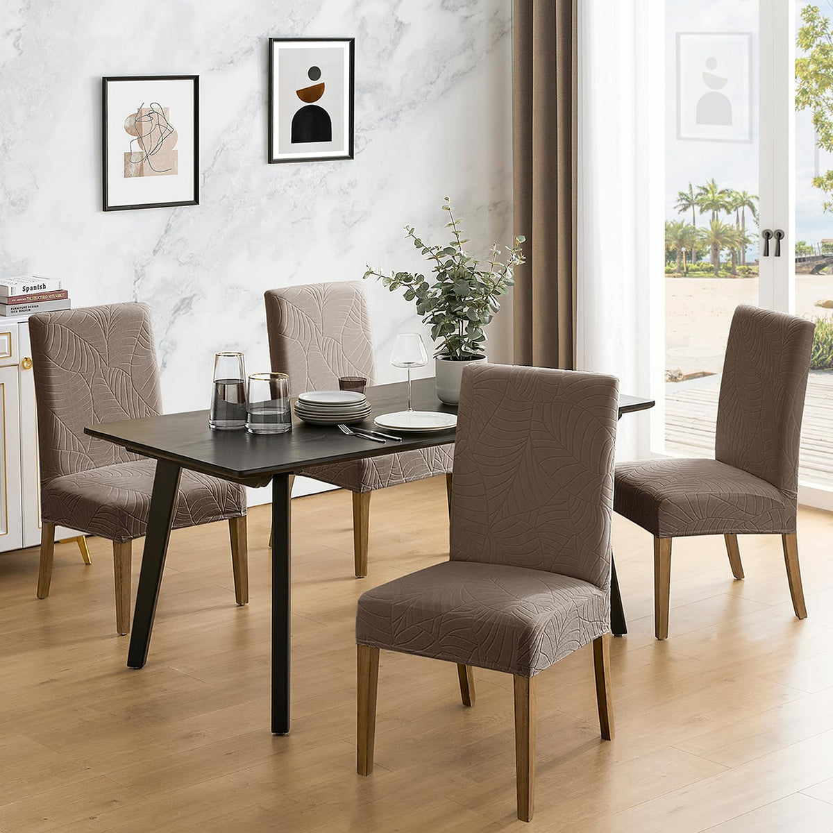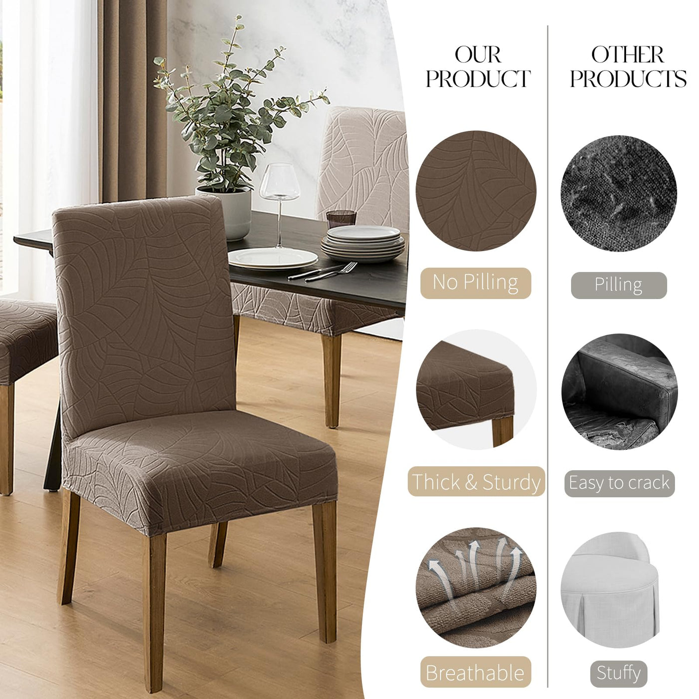 Mosayt 100% Waterproof Dining Room Chair Covers Set Of 6, Super Fit Stretch Jacquard Parson Chairs Slipcovers Removable Washable