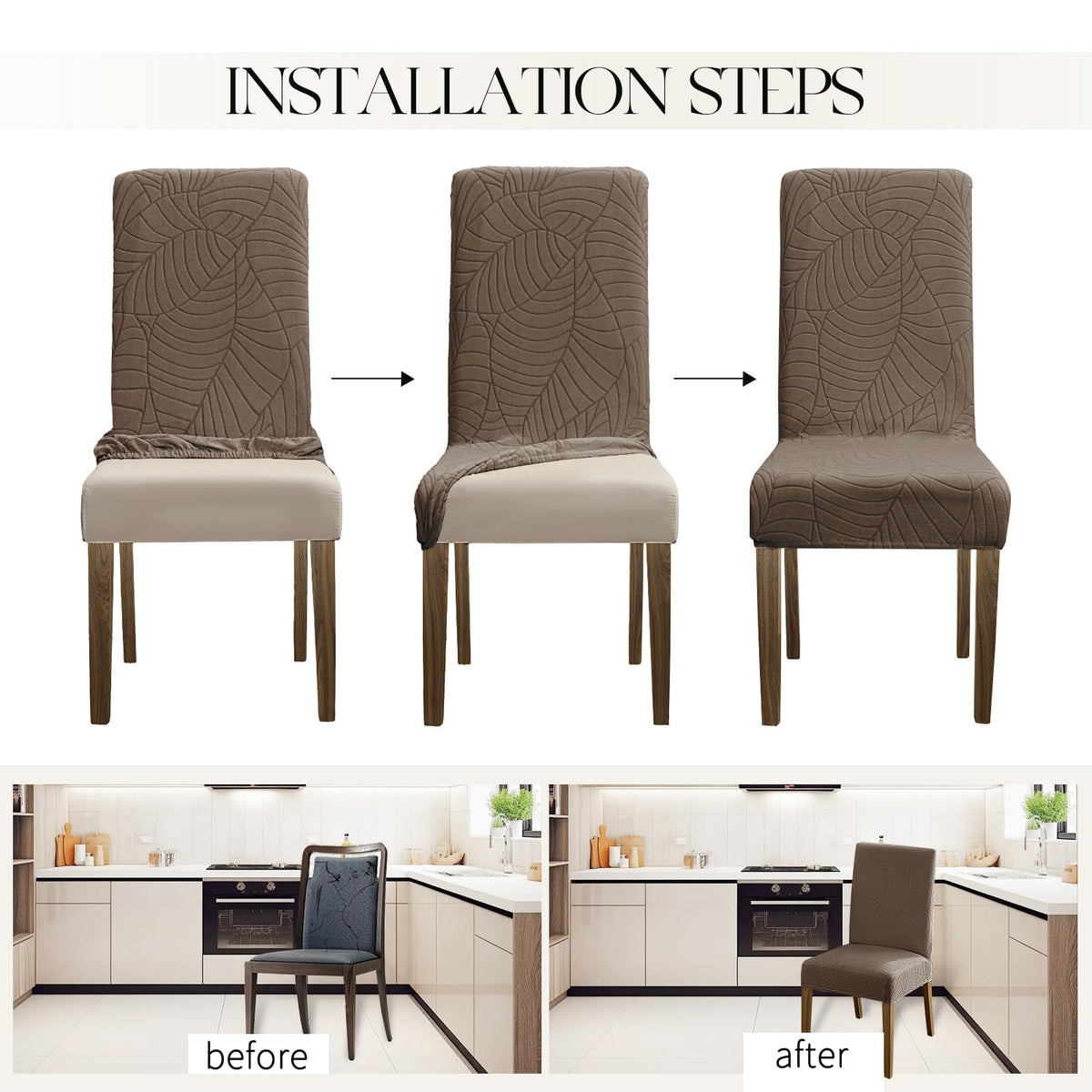 Mosayt Chair Covers Are Made Of Comfortable And Highly Elastic Polyester Fabric, Suitable For Most Dining Chairs. The Simple And Stylish Patterns And Elegant Jacquard Fabric Make Your Chairs More Advanced. Our Dining Chair Covers Are Waterproof And Can Protect Your Chair From Water And Beverage Stains. Machine Washable. The Chair Slipcovers Are Soft And Comfortable, Not Fading Or Pilling, And Will Not Make You Feel Stuffy Or Sweaty. Various Colors And Different Jacquard Patterns Can Meet Your Different Needs And Be Suitable For Many Occasion Including Dining Room, Kitchens, Restaurants, Hotels, Wedding Banquets, Dinner Parties, Offices, Meetings, Celebrations, And More. If You Have Any Queries, Please Feel Free To Contact Us, We Promise To Give You A Satisfactory Solution In 24 Hours. Enjoy Wonderful Life With Mosayt Beautiful, Comfortable And Practical Seat Covers!