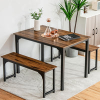 Nafort 3-Piece Dining Table Set For 4, Kitchen Table With 2 Benches, 43.5’’ Space Saving Dining Room Table With Metal Frame & Solid Mdf Wood Board, Ideal For Home, Restaurant, Patio Outdoor