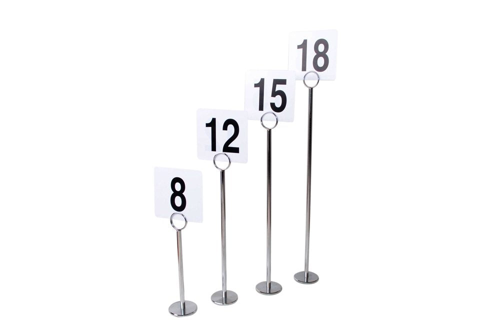 Q: How do I care for and maintain the stainless steel table number holders?A: To maintain the appearance of your stainless steel table number holders, simply wipe them with a soft cloth and mild detergent. Avoid abrasive cleaners to prevent scratching the chrome finish.