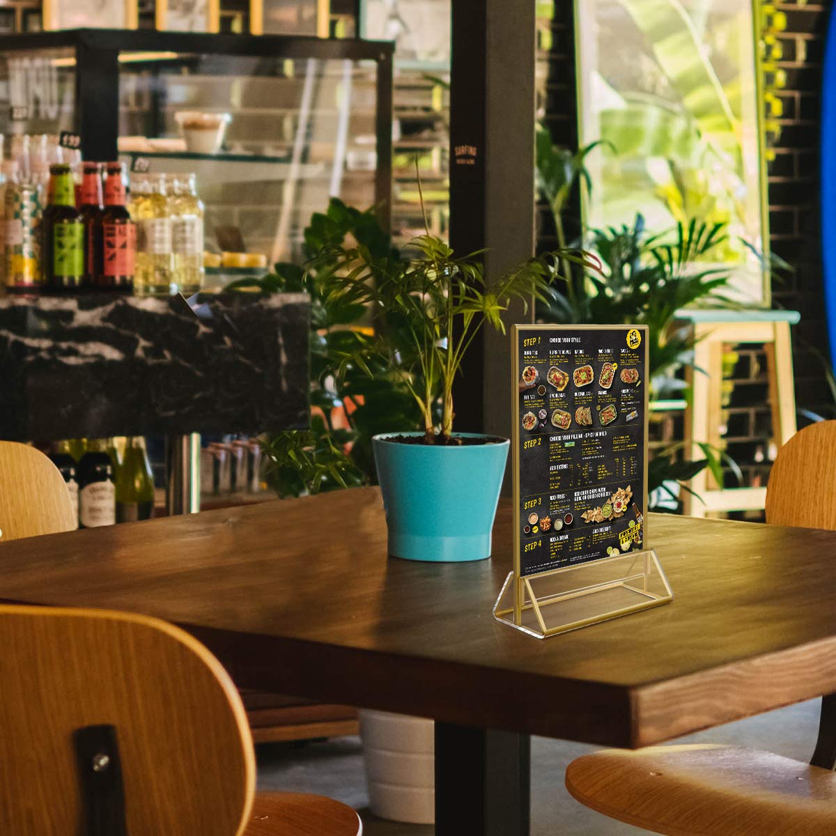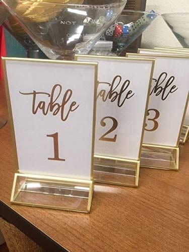 Niubee Acrylic Sign Holder For Wedding Table Numbers With Gold Borders And Vertical Stand, Double Sided Table Menu Holders Picture Frames Two Size Option: 4X6 Inch; 5X7 Inch Vertical Orientation - This Acrylic Sign Holder Presents An 5X7 Inches Paper In Vertical Orientation. This Package Include 6 Pieces Sign Holders. Double Sided Display: Great For Menus, Flyer And Table Signs. Displays And Protects On Both Sides With Great Clear Visibility And Is Easy To Clean & Change Content. The Border Is 4Mm Thick. Acrylic Factory & Support Customization : Niubee Is A Professional Acrylic Factory Who Designs Produces Acrylic Frames, Acrylic Sign Holders, Acrylic Wall Shelves And Other Acrylic Products. Just Share Us Your Requirement, We Can Manufacture Any Size Frame You Need.