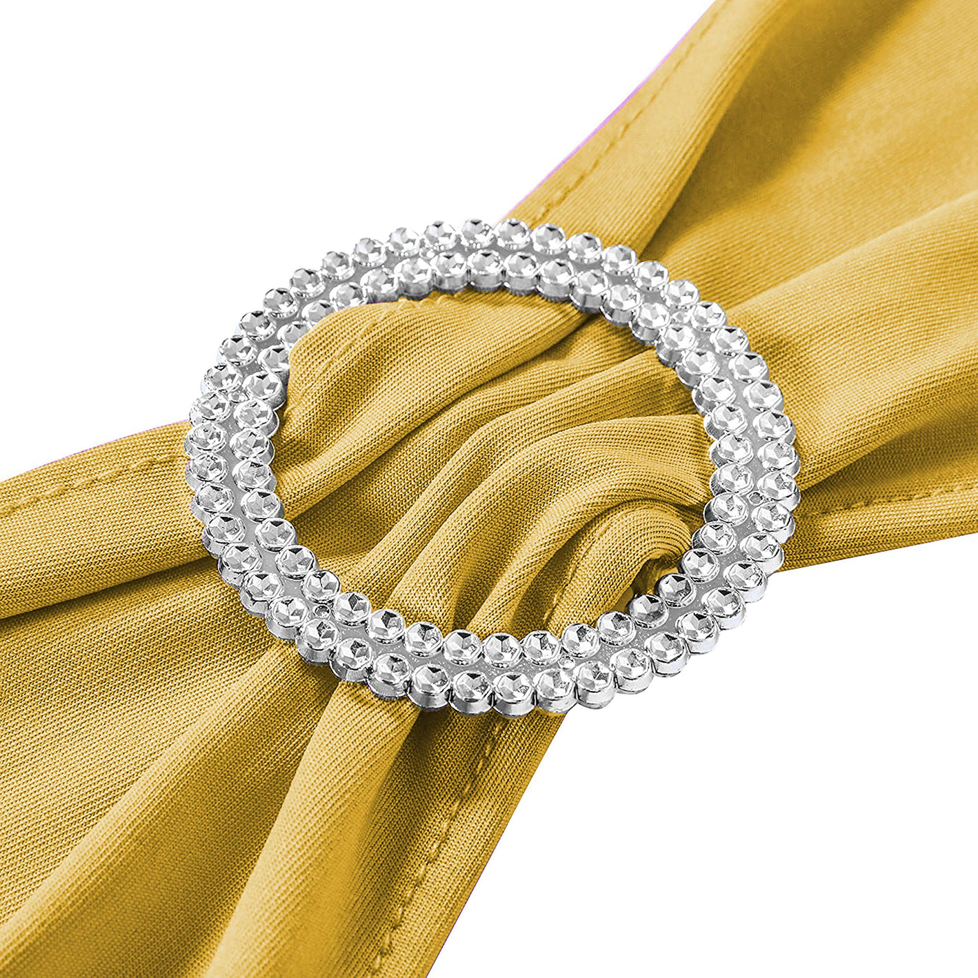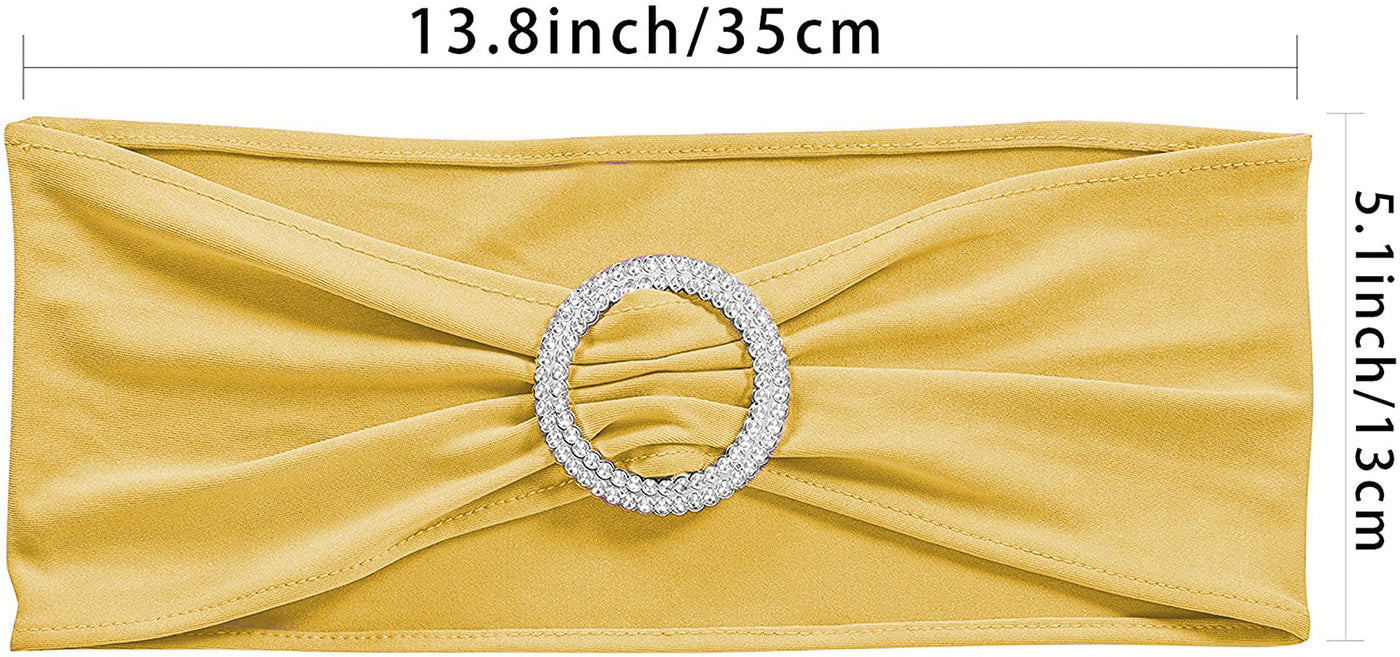 Obstal 50 Pcs Spandex Stretch Chair Sashes Bows For Wedding Reception- Universal Elastic Chair Cover Bands With Buckle Slider For Banquet, Party, Hotel Event Decorations Gold Sashes