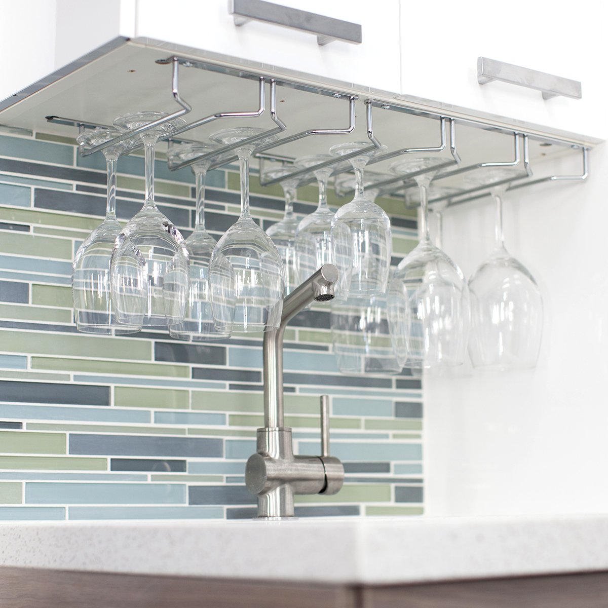 The Under-Cabinet Stemware Rack Is Designed To Solve The Two Biggest Issues Plaguing Stemware Today: Cleanliness And Protection. Cleanliness Means Avoiding Collecting All The Dust And Particles Flying Around Your Home And Protection Means Avoiding All Those Bumps And Taps That Lead To Chips And Cracks. The Rack Avoids These Issues By Allowing Stemware To Hang Upside Down In An Out-Of-The-Way Area, Keeping The Bowl Clean And The Glasses Themselves Free Of Incidental Contact. The Brilliant Chrome Finish Isn'T Exactly An Eye-Sore Either.