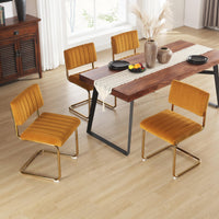 Onevog Orange Velvet Dining Chairs Set Of 4, Upholstered Kitchen Dining Room Chairs, Comfy Chair With Gold Metal Legs, Cantileve