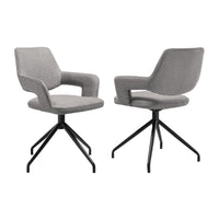Penny Swivel Upholstered Dining Chair in Gray Fabric with Black Metal Legs - Set of 2