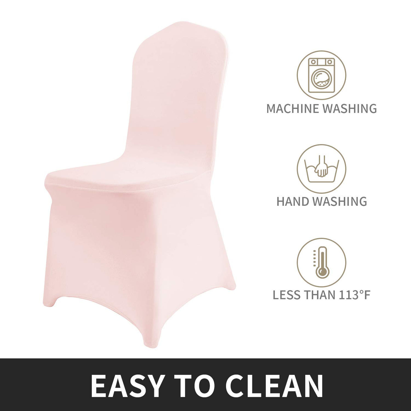 Peomeise 12Pcs Stretch Spandex Chair Cover For Wedding Party Dining Banquet Event (Blush Pink, 12)