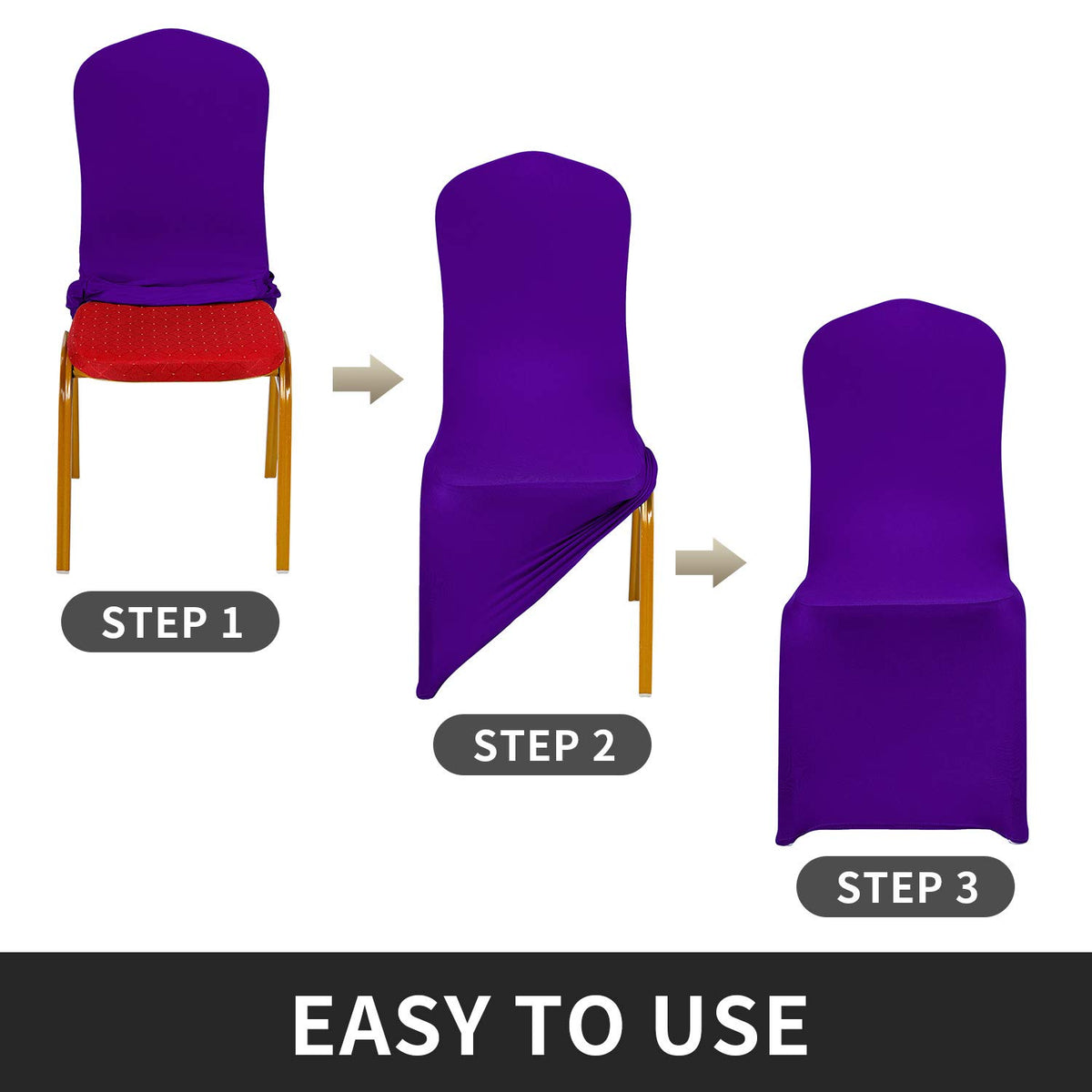 Peomeise Stretch Spandex Chair Cover For Wedding Party Dining Banquet Event (Purple, 6)