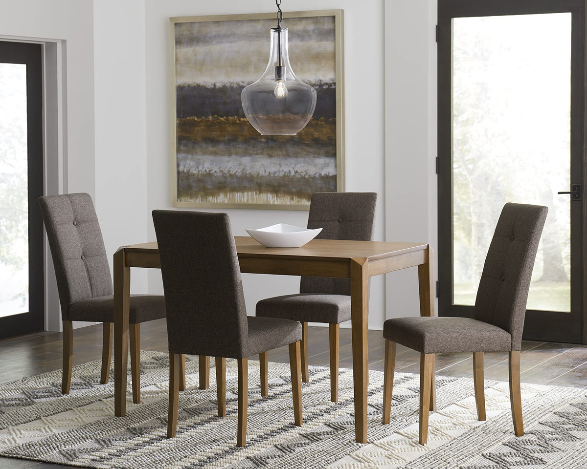 Q: What styles of dining chairs pair well with the Landon Dining Table?A: The simplistic design and elegant acorn finish of the Landon Dining Table allow it to pair well with a variety of dining chairs, including modern, farmhouse, and rustic styles.