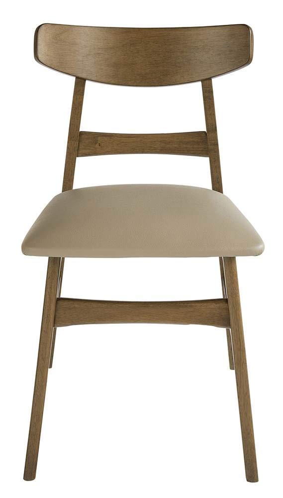 A Great Little Mid-Modern Style Dining Table With Chairs That Will Fit Your Small Space Dining Needs Perfectly. Delicious Toffee Finish That Is Compatible With Many Colors And Finishes In Our Eclectic Lives. Chair Seats Are Upholstered In A Bone Colored Faux Leather For Excellent Durability.