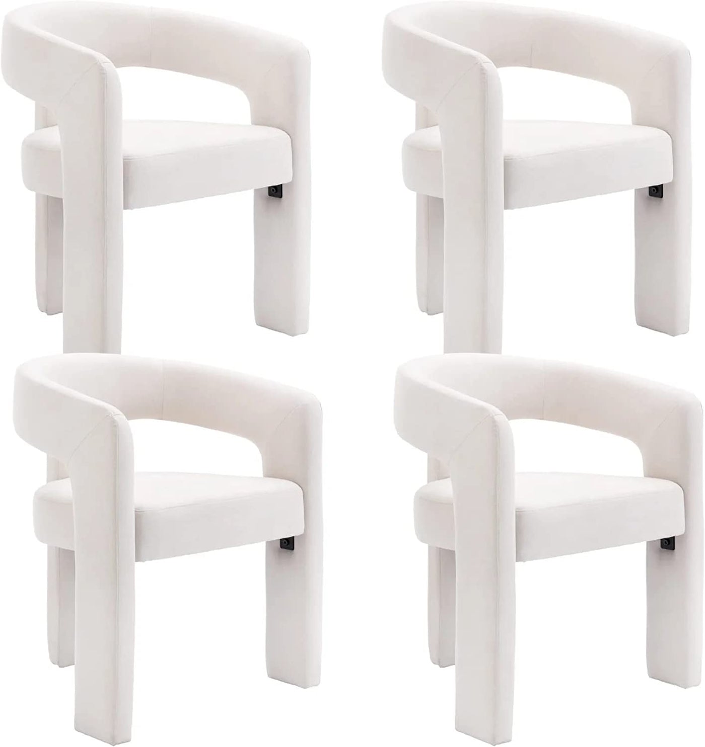 Rivova Modern Barrel Dining Chairs Set Of 4, Linen Upholstered Accent Side Chair With Arms Comfy Makeup Vanity Chairs, Dining Li