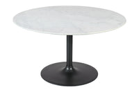 The Rowan 54" Round Dining table is a captivating centerpiece that seamlessly blends luxury and modern aesthetics. Crafted with meticulous attention to detail, this opulent table showcases a cast iron base, available in your choice of a pristine white or sleek gunmetal finish. The base exudes durability and elegance, providing a strong foundation for the captivating solid marble top. Made from genuine marble, the tabletop adds a touch of timeless sophistication, elevating any dining space. With its perfect blend of materials, sleek design, and luxurious appeal, the Rowan dining table is sure to create an atmosphere of refined elegance in your home.