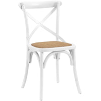 Indulge in nostalgic moments while enjoying a relaxed tea or satisfying breakfast. This chair effortlessly combines a rustic aesthetic with contemporary elements, featuring an exposed wooden backrest and sleek tapered legs. Arriving fully assembled, it effortlessly enhances the charm of country cottages, rustic settings, or serves as a delightful retreat for city dwellers. Set includes: One - Gear Dining Side Chair.