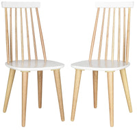 A modern twist on a dining room favorite, this adaptation of the classic Windsor side chair gets a fashion edge with a combination of natural and white finishes. Crafted of sustainable rubber wood, this set of two brings comfort and style to the table.