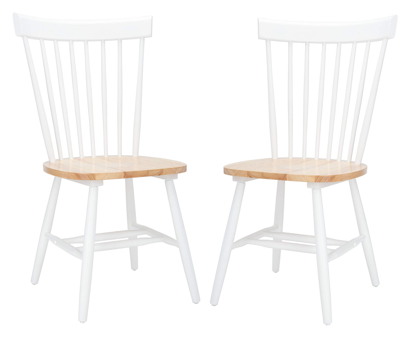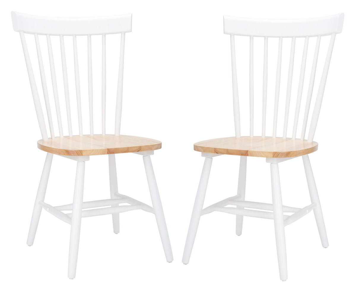 Safavieh Home Collection Parker Farmhouse White/Natural Windsor Spindle Solid Wood Dining Chair Set Of 2