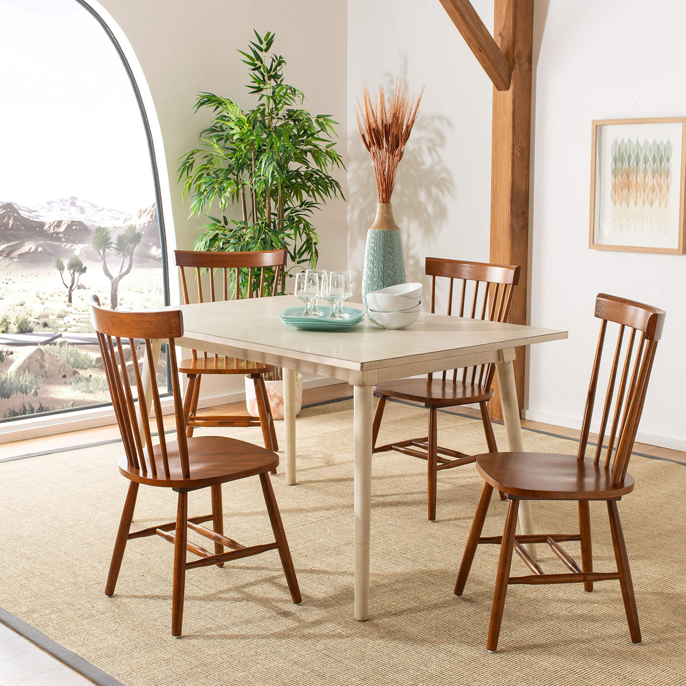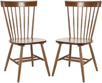 The classic Safavieh American Home Collection Bristol Oak Spindle Side Chairs is sure to be the perfect addition to any decor. The Bristol Chair is crafted from sturdy Malaysian Oak and has a lovely natural oak color. It features a chic glossy finish and sleek design. The Bristol Chair comes in a set of two which makes it perfect for entertaining. Assembly required, these chairs measure -Inch 21 wide by 20.5 -Inch deep by 36 -Inch tall with a seat height of 17.3 -Inch.