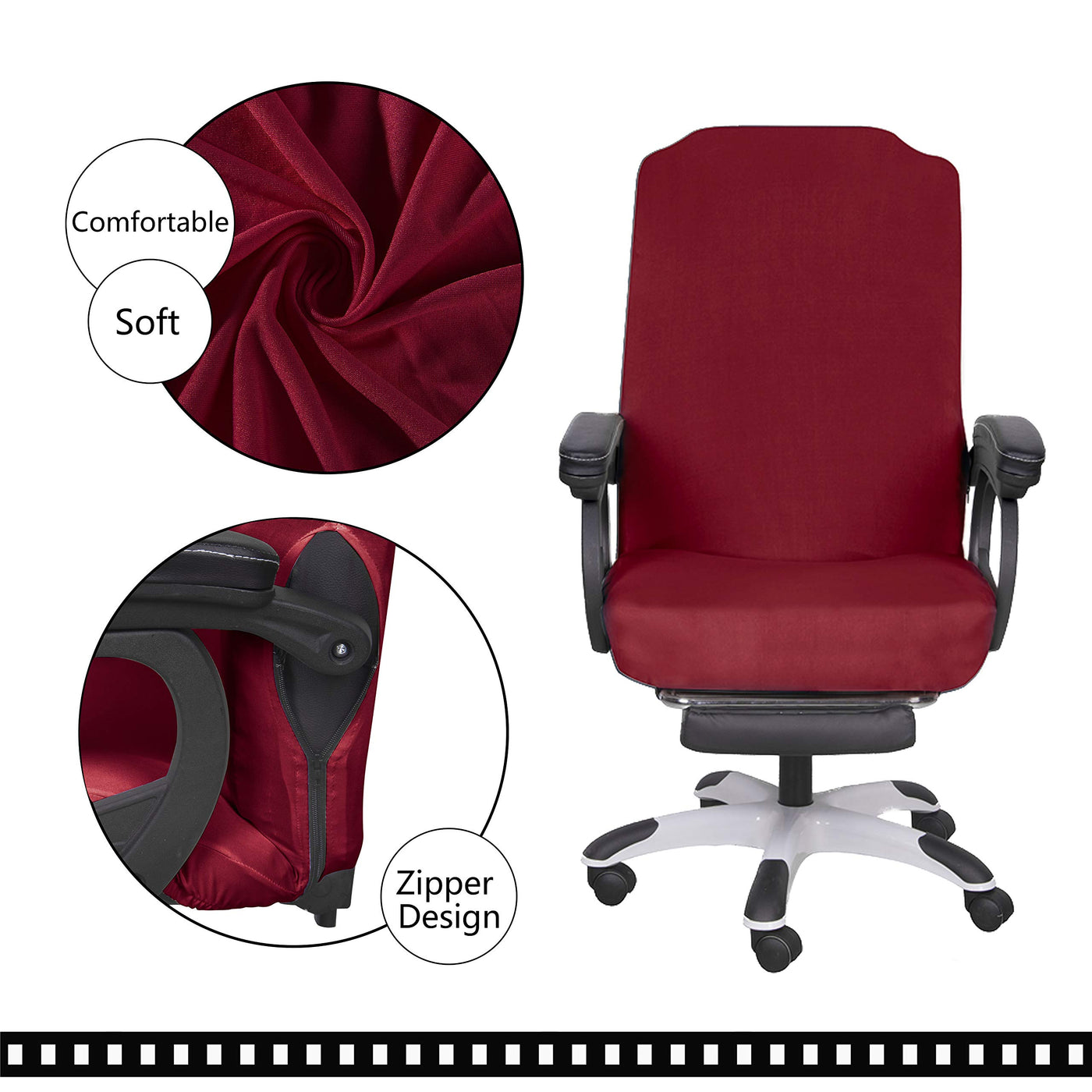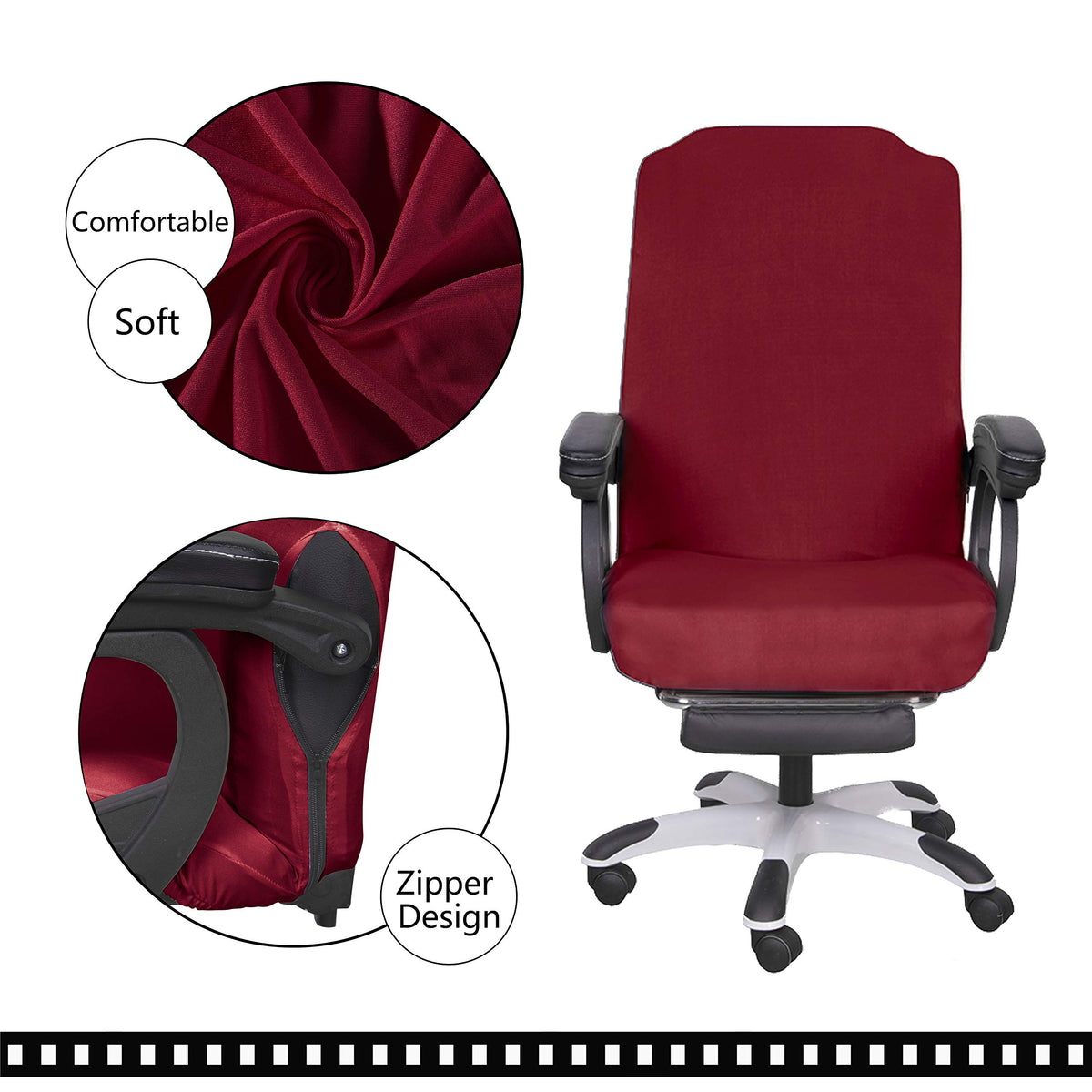 Saraflora Office Chair Cover- Medium, Burgundy- Removable Computer Chair Cover For Office Chair With Zipper For Universal Rotati