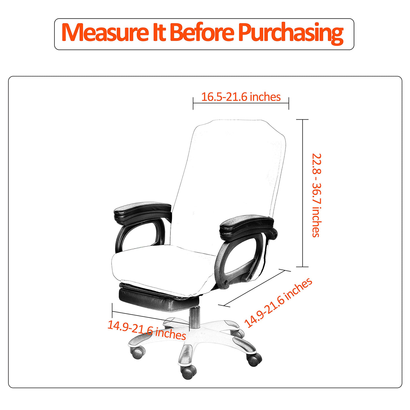 Q: What sizes of chairs does the SARAFLORA Office Chair Cover fit?A: The SARAFLORA Office Chair Cover is designed to fit medium-sized chairs with a back width of 16.5-21.6 inches and a height of 22.8-26.7 inches, as well as seat dimensions of 14.9-21.6 inches in width and length.