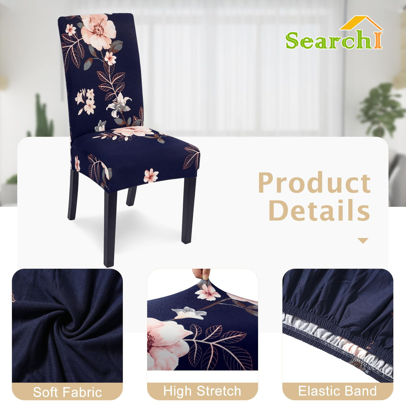 SearchI Stretchy Dining Room Chair Covers Spandex Kitchen Chair Covers Removable Seat Protector Slipcovers Are you worried about the worn-out chairs ? SearchI universal slipcovers for dining chairs will be your best choice, will create a better household life for you. SearchI devotes to provide high quality chair covers at reasonable prices and best service for customers.