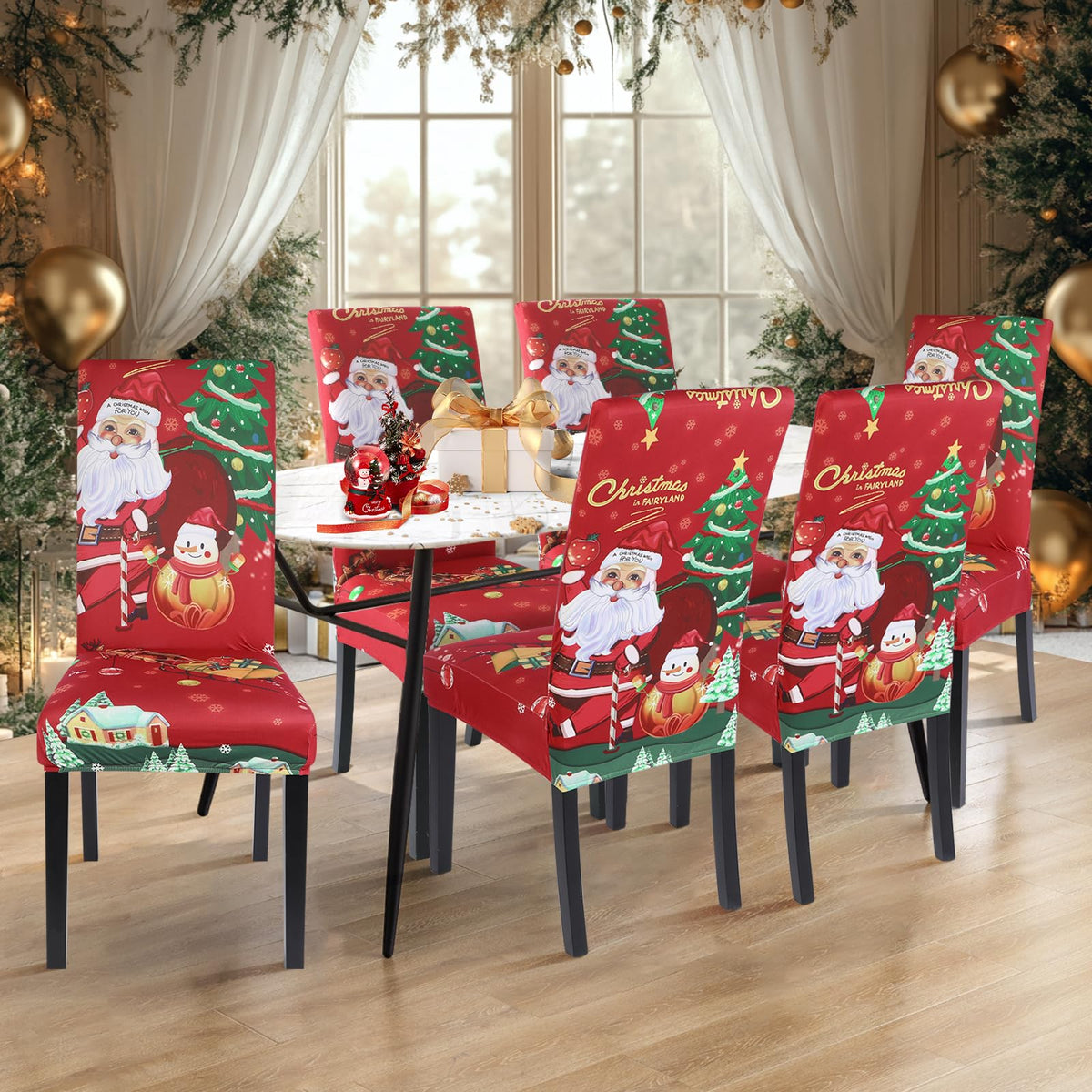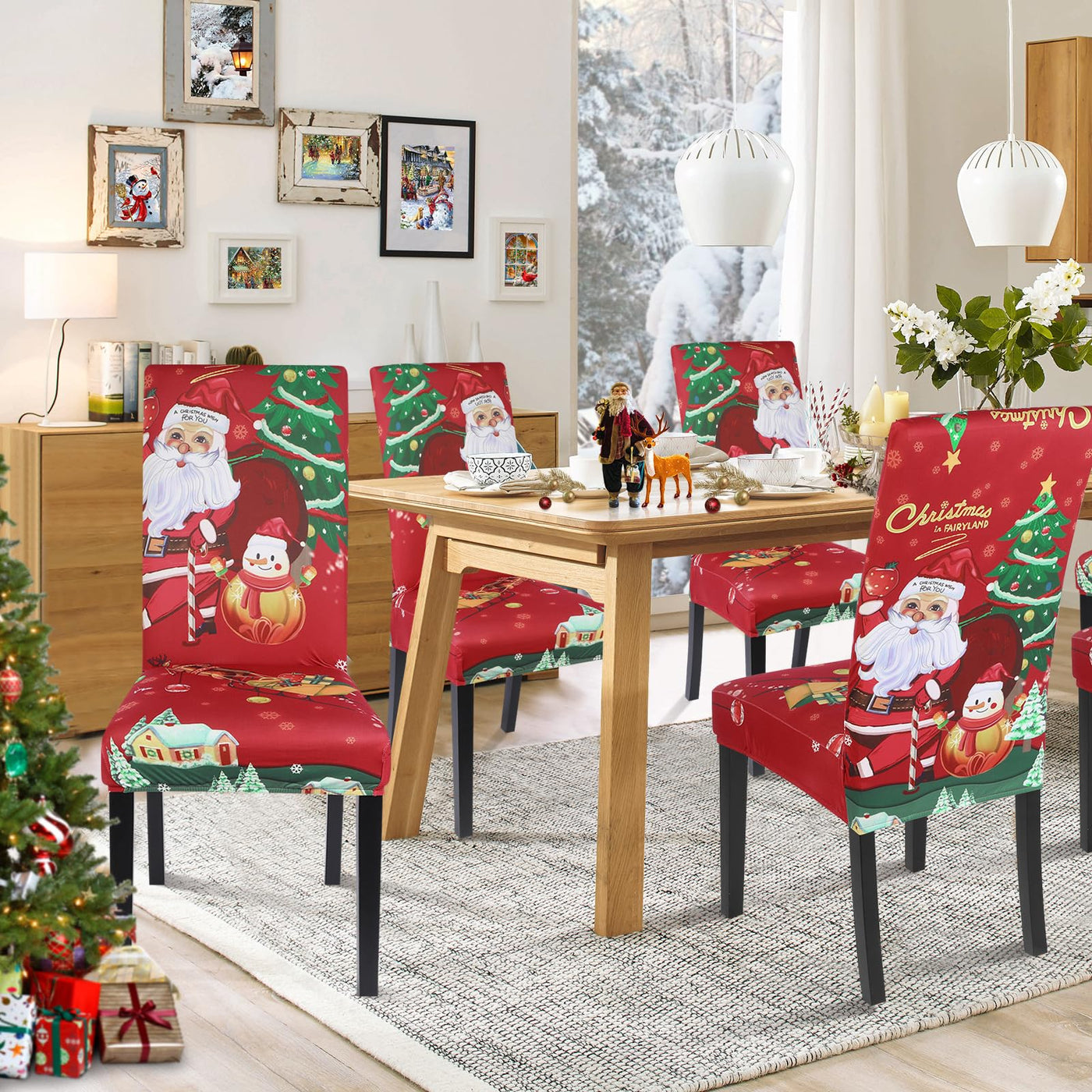 Searchi Christmas Dining Room Chair Covers Set Of 8, Stretch Xmas Chair Slipcovers Protector, Spandex Washable Kitchen Parsons Chair Cover For Dining Room,Christmas Decor,Holiday Party(Santa Claus)