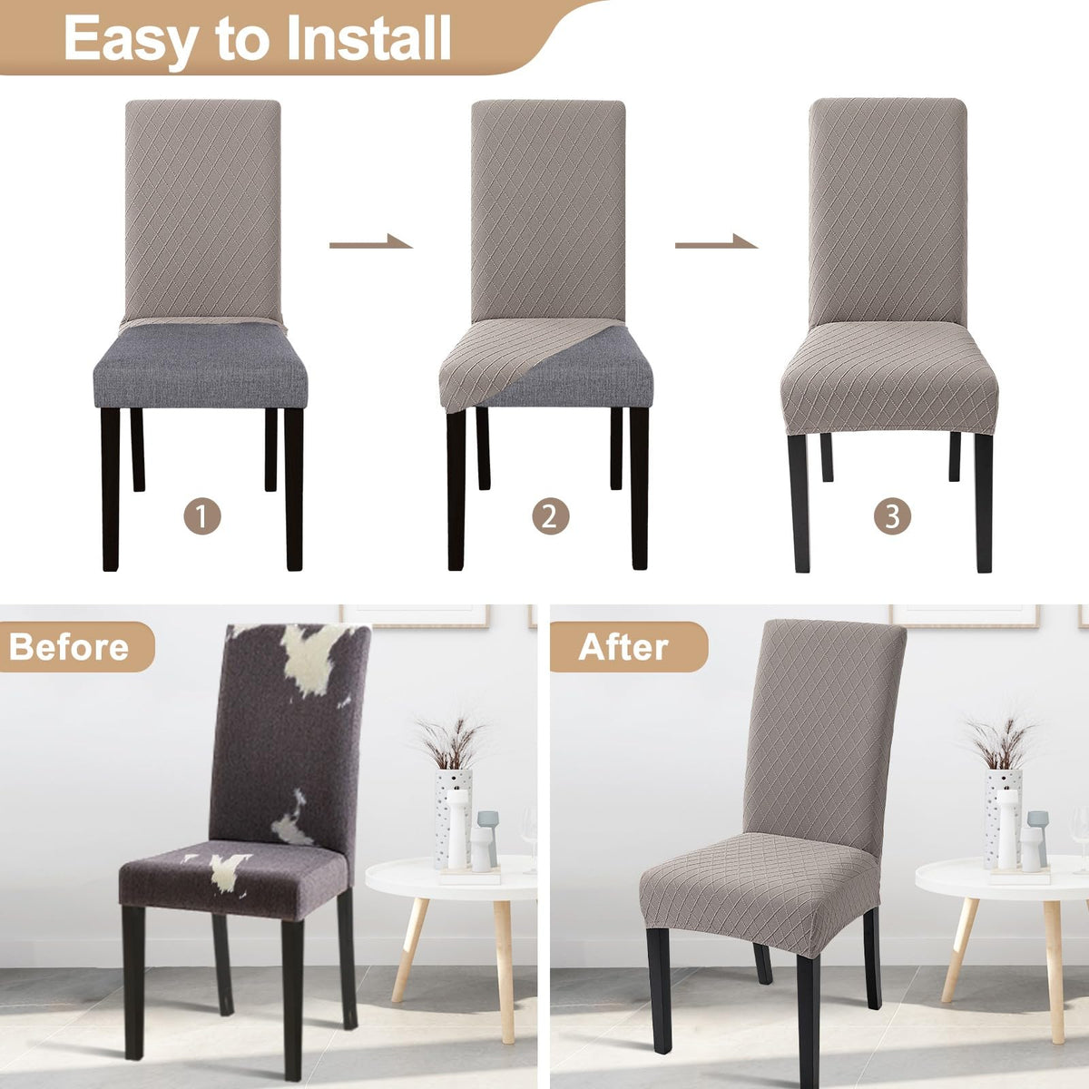 SearchI Stretch Dining Chair Covers Spandex Kitchen Chair Covers Removable Dining Chair Protector Slipcovers Are you worried about the worn-out chairs? SearchI universal slipcovers for dining chairs will be your best choice, will create a better household life for you. SearchI devotes to provide high quality dinning room chair slipcovers at reasonable prices and best service for customers.