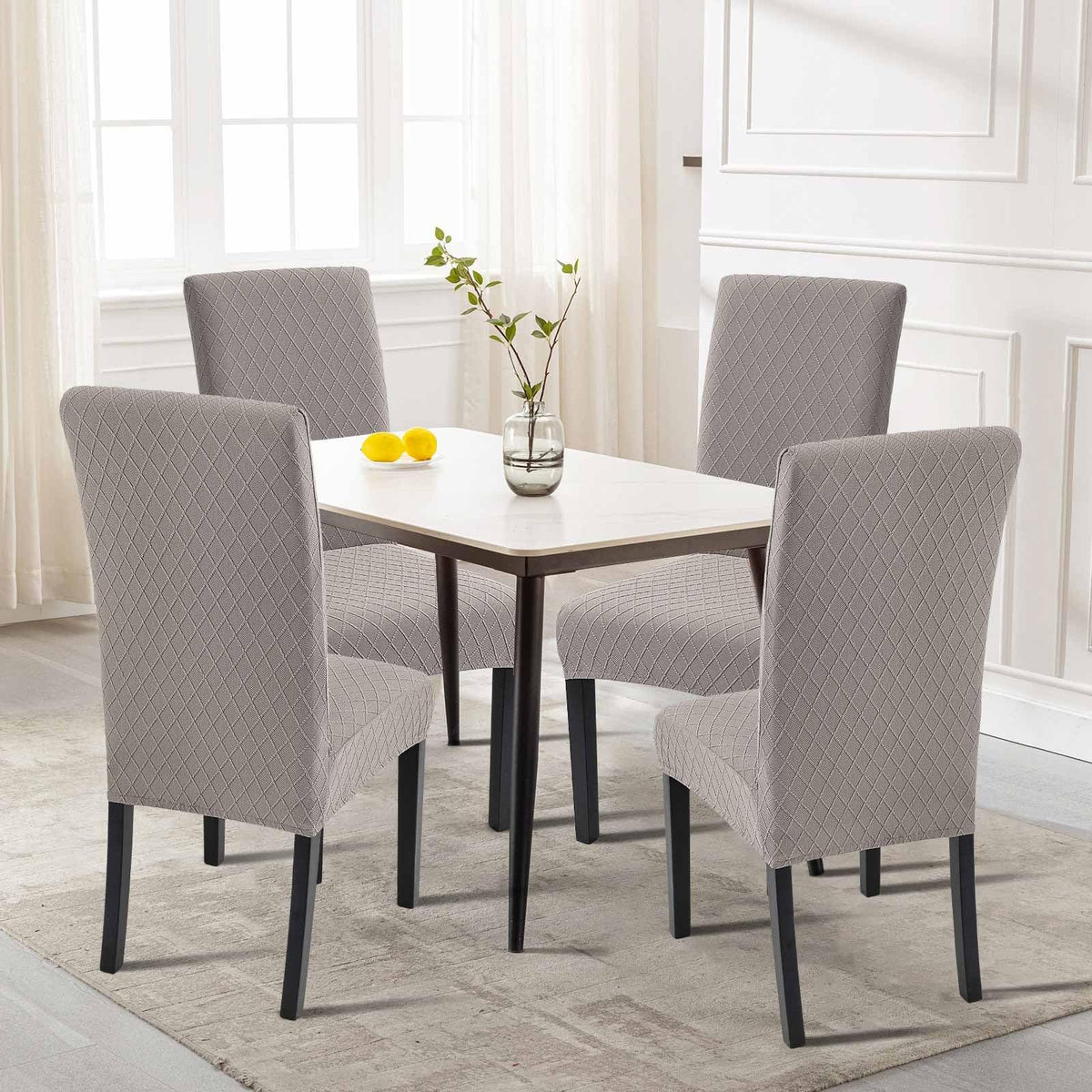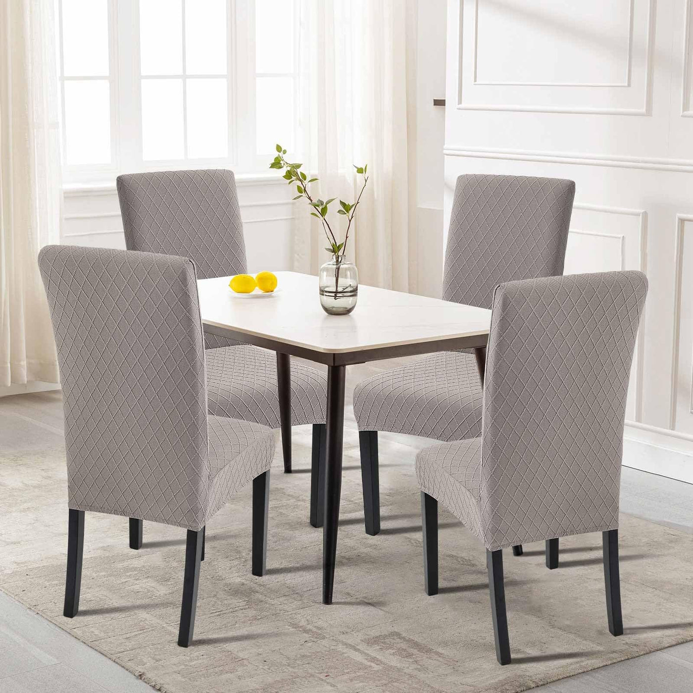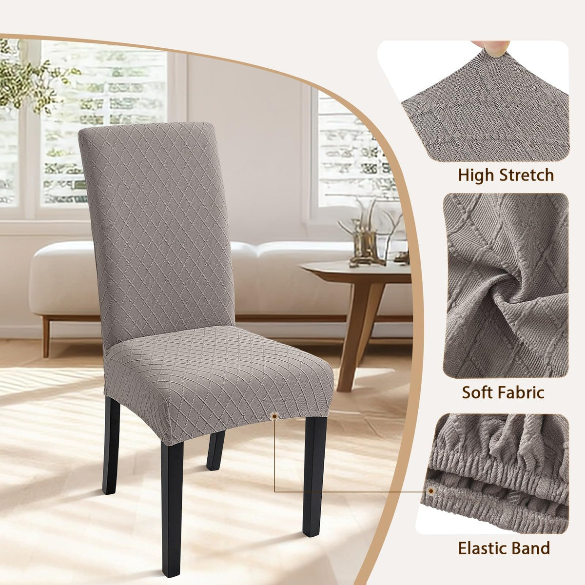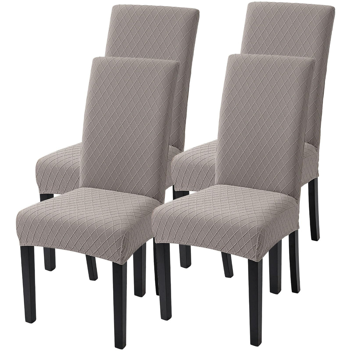 Searchi Dining Room Chair Covers Set Of 4, Stretch Jacquard Parsons Chair Slipcovers Removable Washable Kitchen Chair Protector Cover For Dining Room, Hotel, Ceremony (Taupe Rhombus)