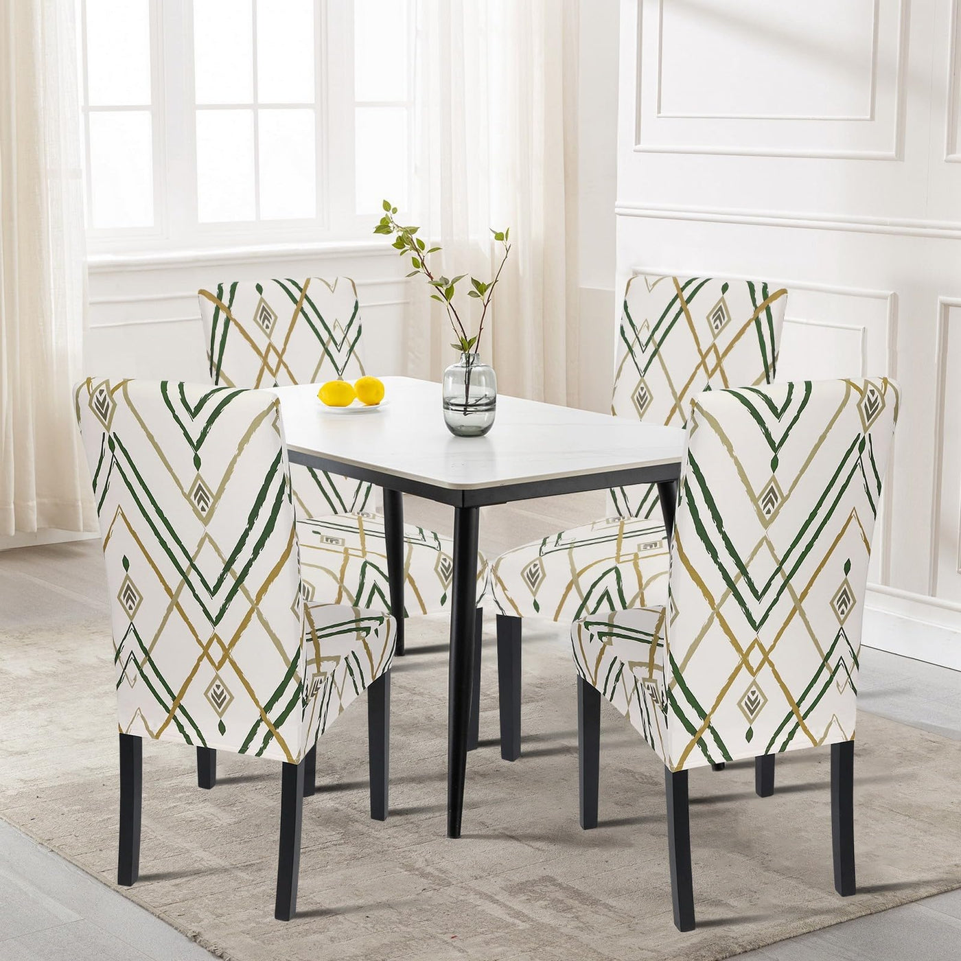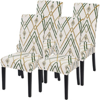 Searchi Dining Room Chair Covers Set Of 4, Stretch Printed Kitchen Chair Slipcovers Removable Washable Parsons Chair Covers Protector For Dining Room, Hotel, Ceremony (Beige-Green Stripe)