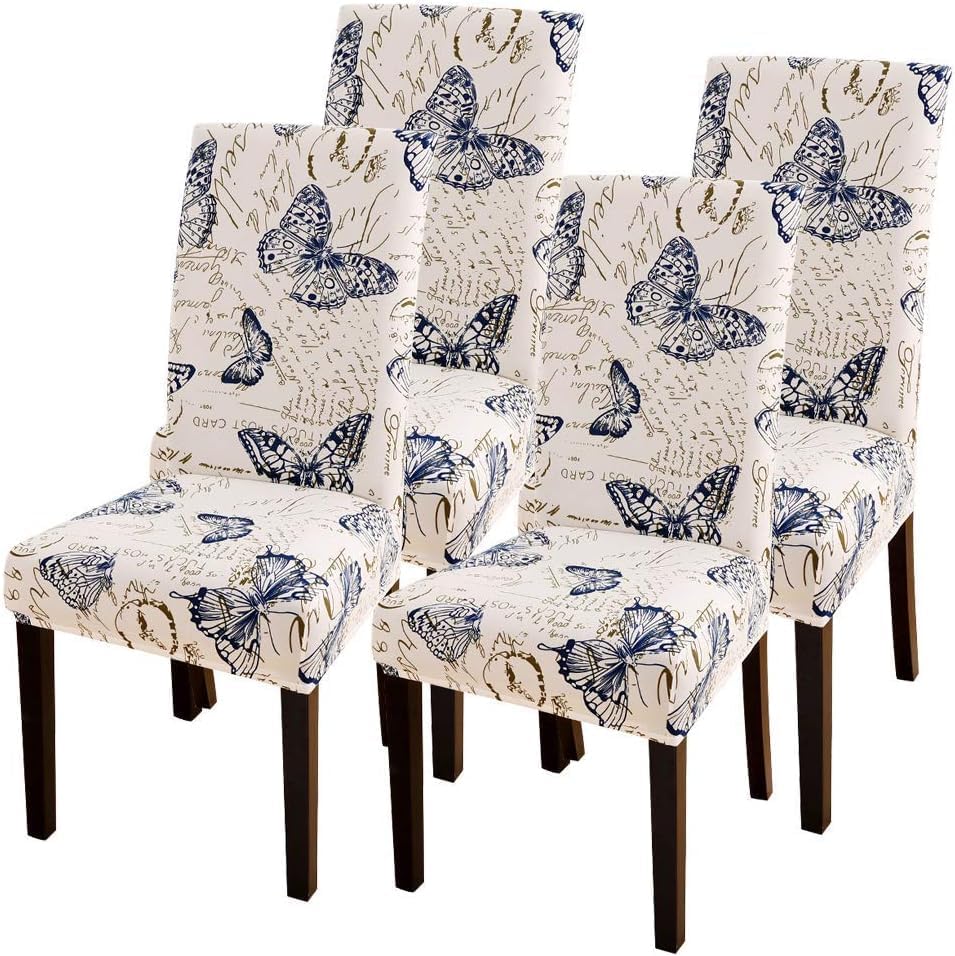 Searchi Dining Room Chair Covers Set Of 4, Stretch Printed Parsons Chair Slipcovers Spandex Removable Washable Kitchen Chair Protector Cover For Dining Room, Hotel, Ceremony (Butterfly Pattern)