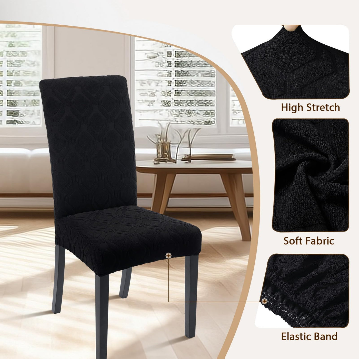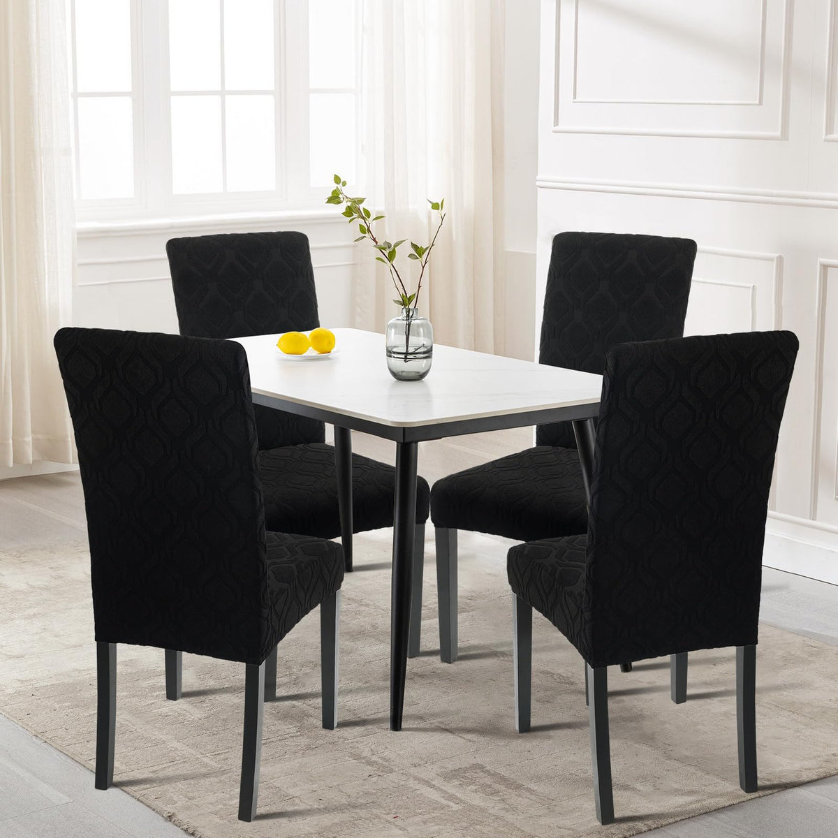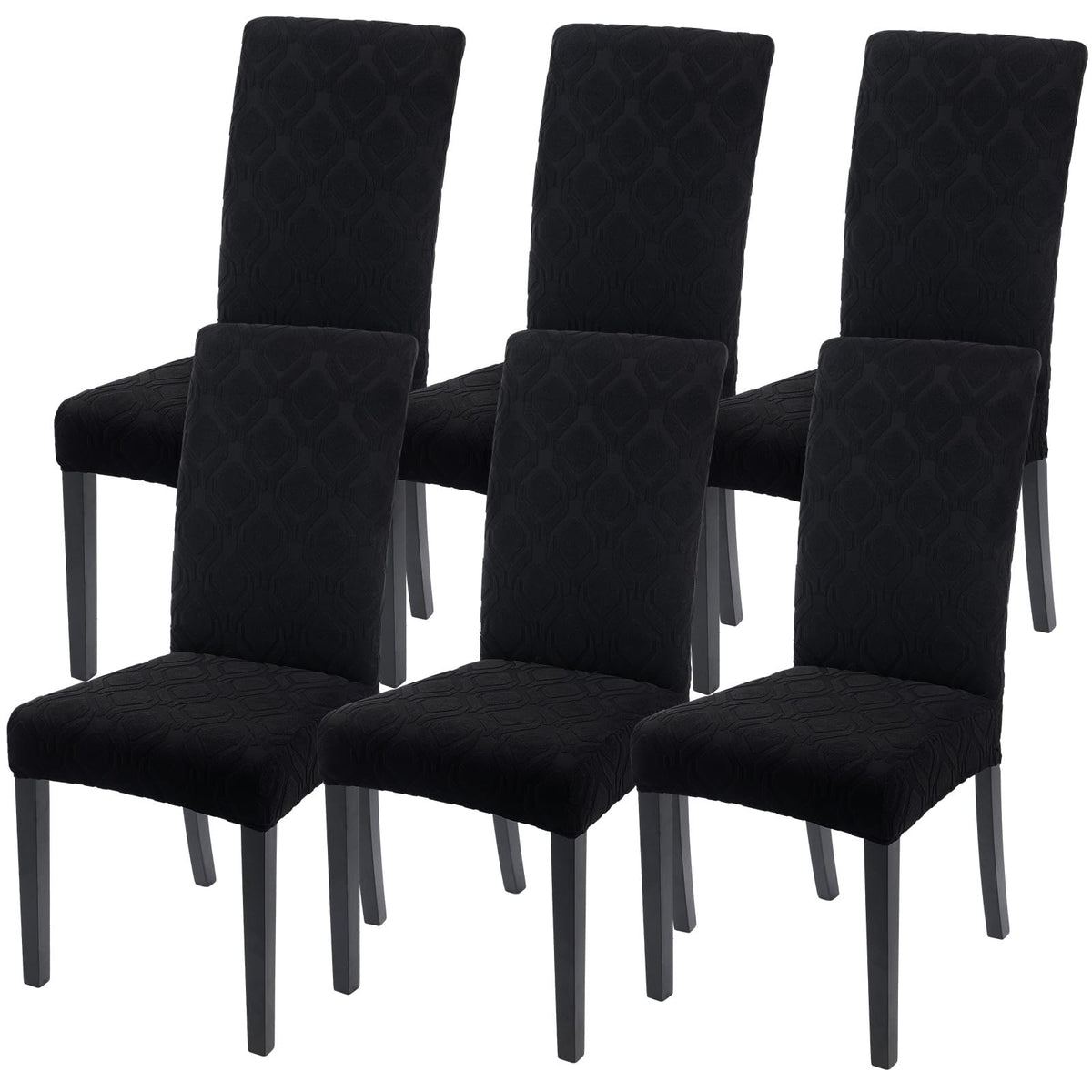 Searchi Dining Room Chair Covers Set Of 6, Stretch Jacquard Parsons Chair Slipcovers Spandex Removable Washable Kitchen Chair Protector Cover For Dining Room, Hotel, Ceremony (Black)