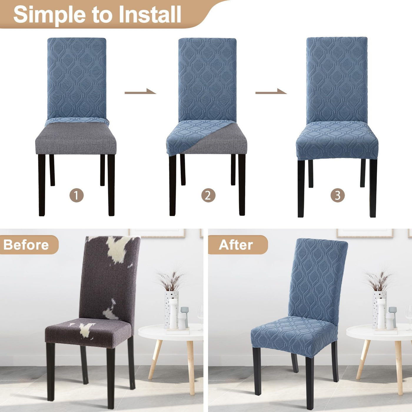 SearchI Stretch Dining Chair Covers Spandex Kitchen Chair Covers Removable Dining Chair Protector Slipcovers Worried about chairs that have seen better days? SearchI's got you covered with our one-size-fits-most dining chair covers. They're the perfect pick to spruce up your space. SearchI is all about bringing you top-notch dining chair covers at fair prices and with great customer service.