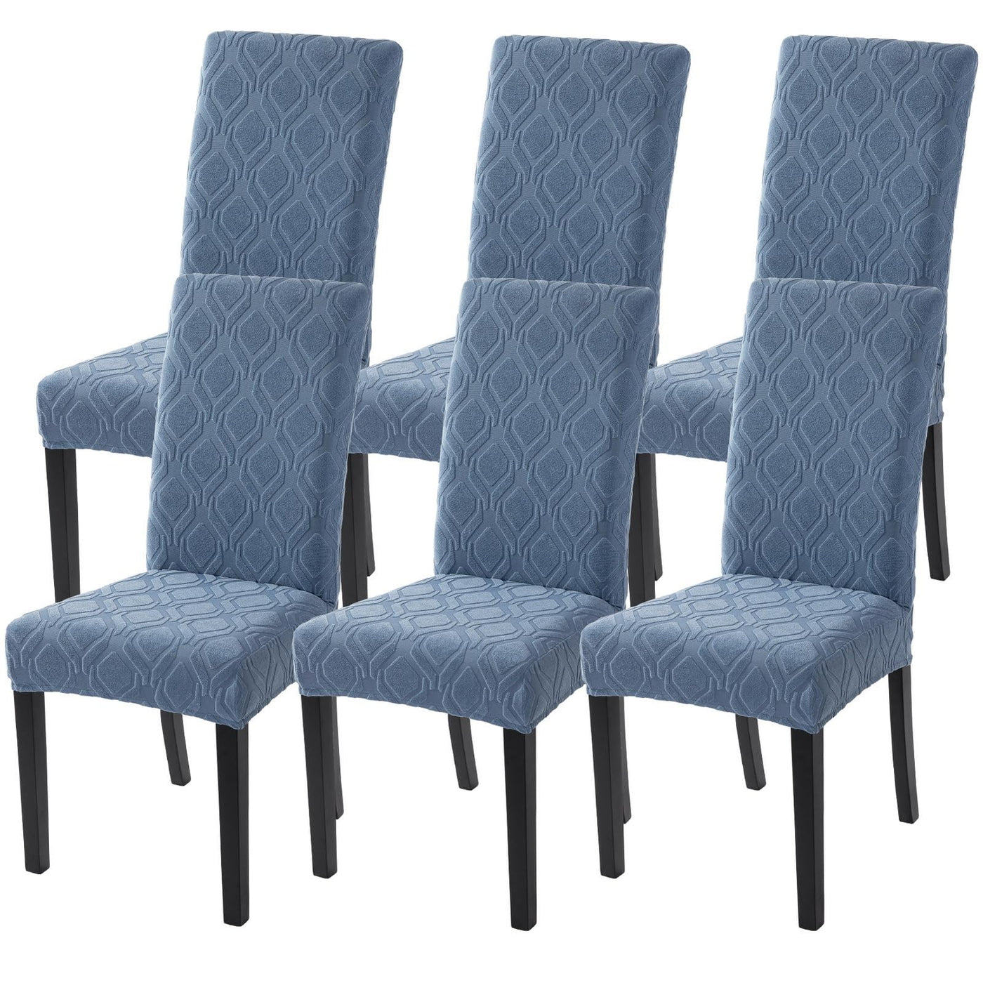 Searchi Dining Room Chair Covers Set Of 6, Stretch Jacquard Parsons Chair Slipcovers Spandex Removable Washable Kitchen Chair Protector Cover For Dining Room, Hotel, Ceremony (Gray-Blue Geometric)