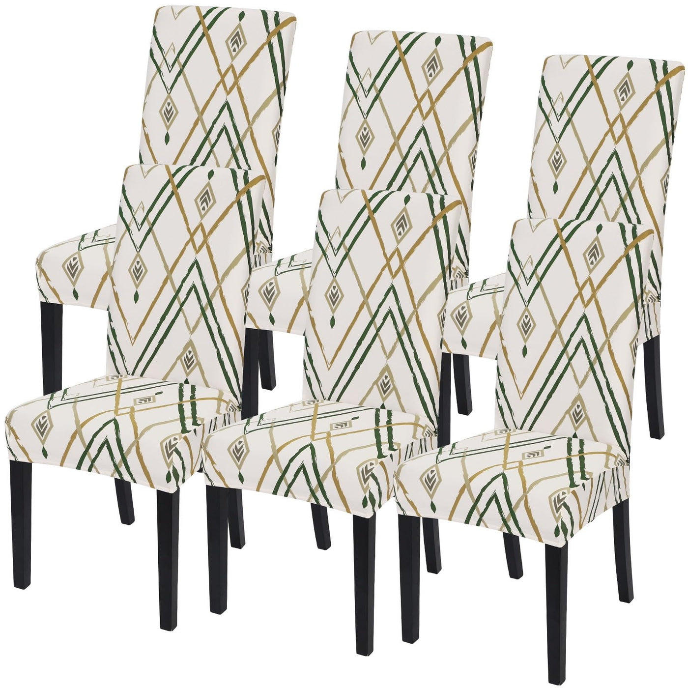 Searchi Dining Room Chair Covers Set Of 6, Stretch Printed Kitchen Chair Slipcovers Removable Washable Parsons Chair Covers Protector For Dining Room, Hotel, Ceremony (Beige-Green Stripe)
